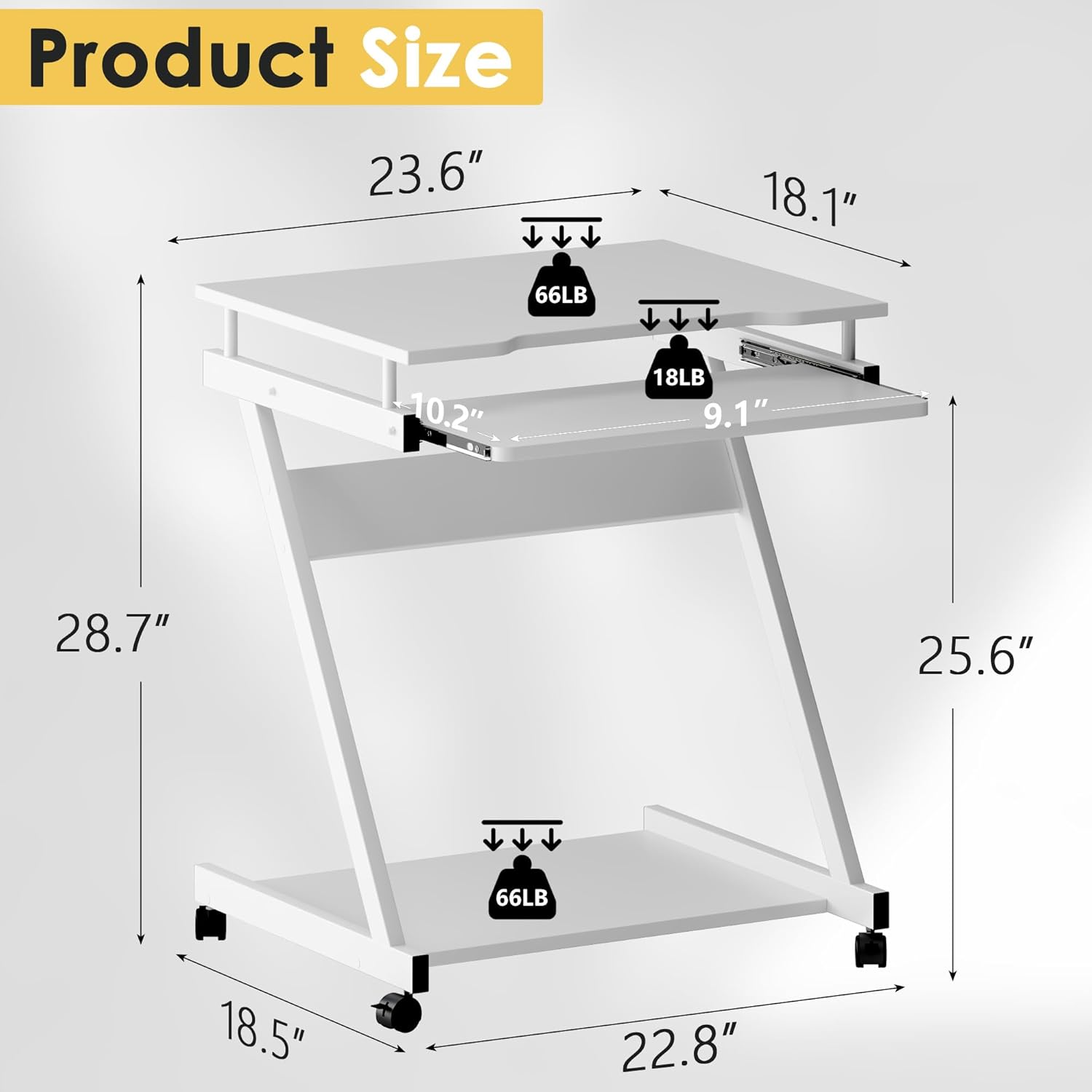 - 【Computer Desk Cart on Wheels】This Z shape computer desk cart comes with four smooth-rolling wheels, two of which can be locked, allowing you to move it easily and securely to any location you desire.