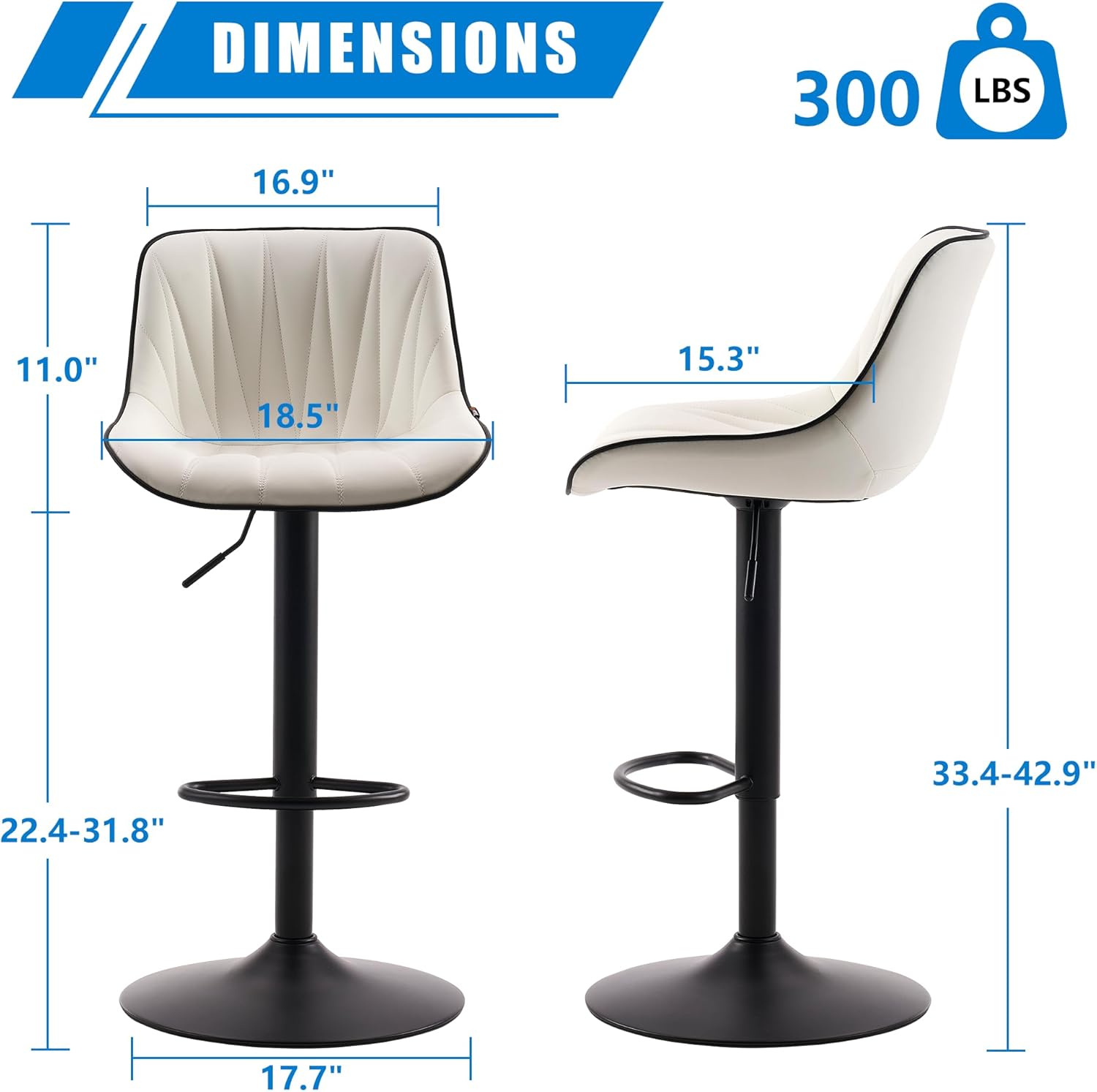 - |BAR STOOLS DIMENSION|: Total: 18" W x 20.86" D x (33.5-42.9)" H, Seat Depth: 15.35" , Seat Width: 18.5" , Seat Height: 22.44-31.9", Back Width: 16.9", Back Height: 11", Maximum load-bearing capacity: 300LBS