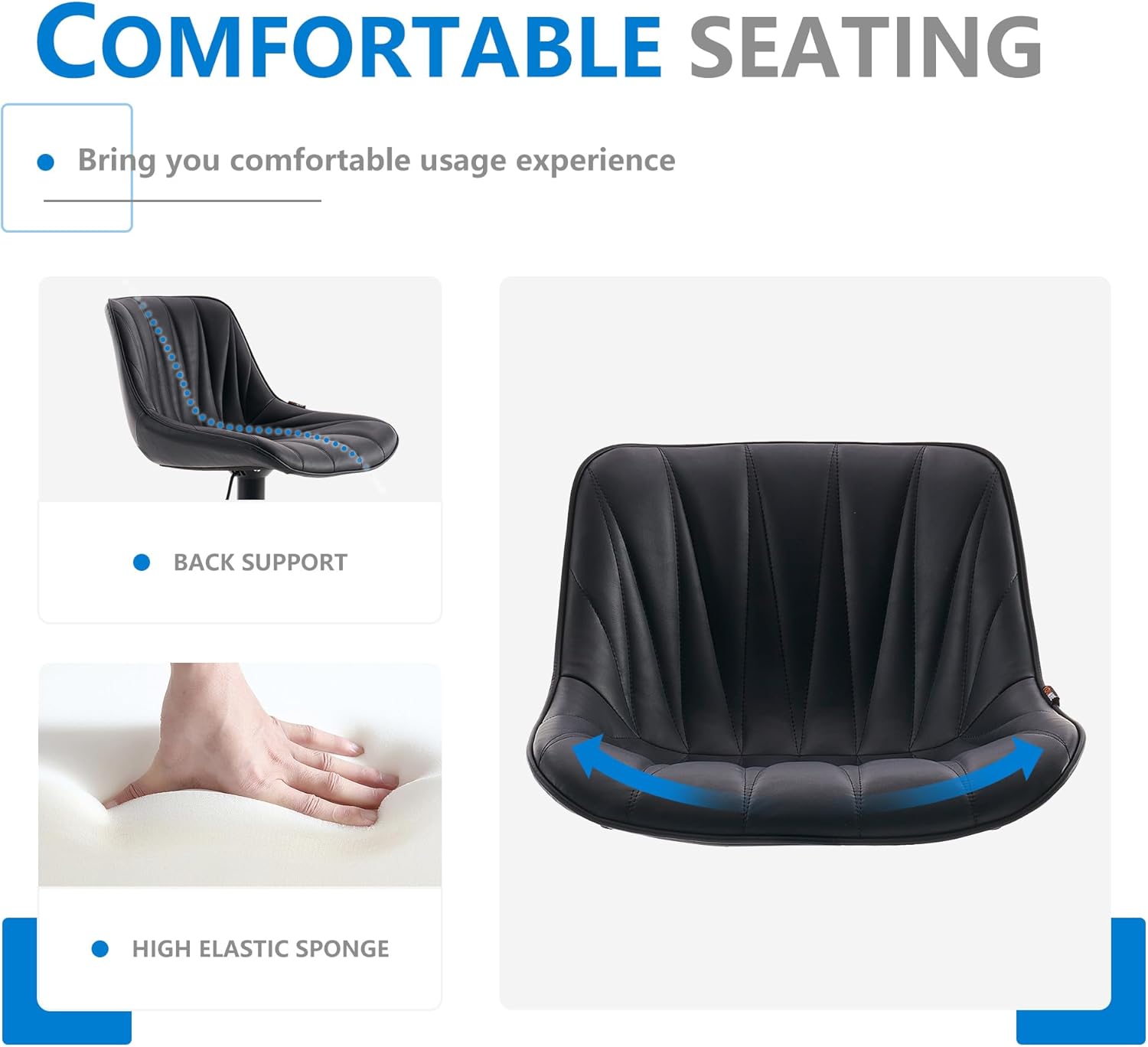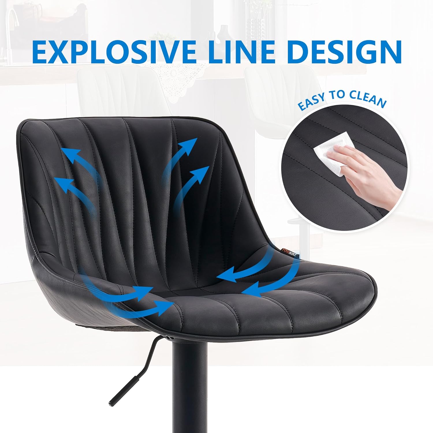 YOUNIKE Bar Stools Set of 2 for Kitchen Island, Black Swivel Tall Bar Stools, Adjustable Barstools with Back, Faux Leather Padded Stools, Modern Counter Height Bar Chairs with 300LBS Support