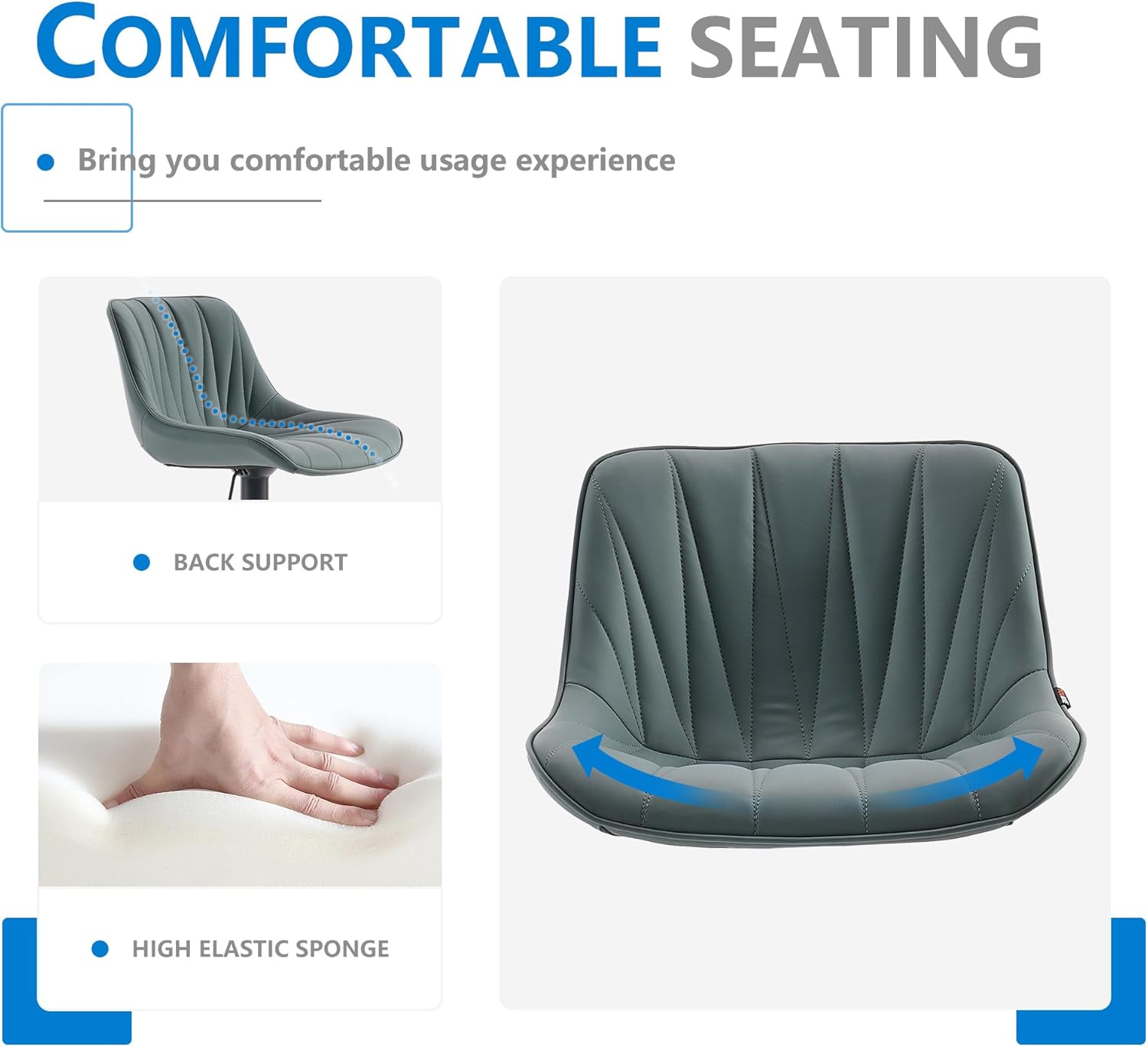 YOUNIKE Bar Stools Set of 2 for Kitchen Island, Greyblue Swivel Tall Barstools, Adjustable Bar Stool with Back, Leather Padded Bar Chairs, Modern Counter Height Stools with 300LBS Support