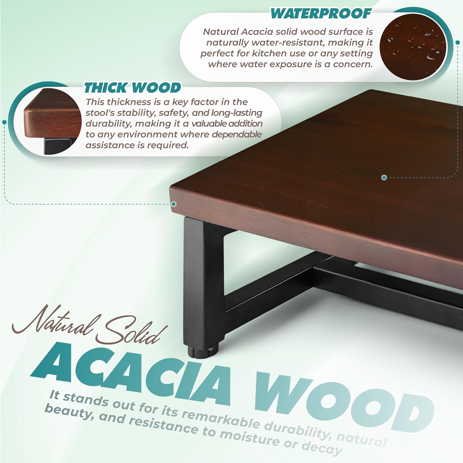 - ✔️ HIGH QUALITY & GOOD LOAD CAPACITY - Our wooden step stool for adults is durable and resistant. We have chosen heavy-duty material for long lasting durability. With thick natural wooden board and premium metal frame to hold up to 500lb.