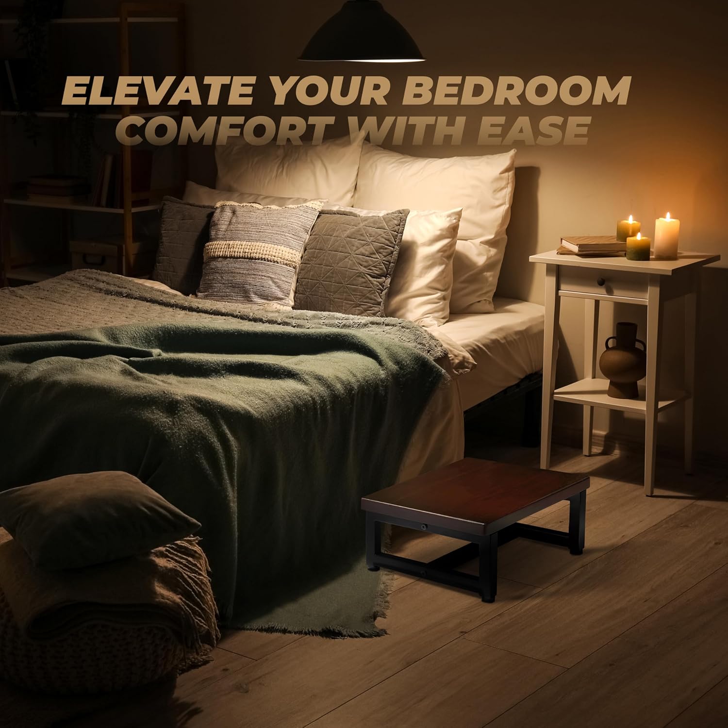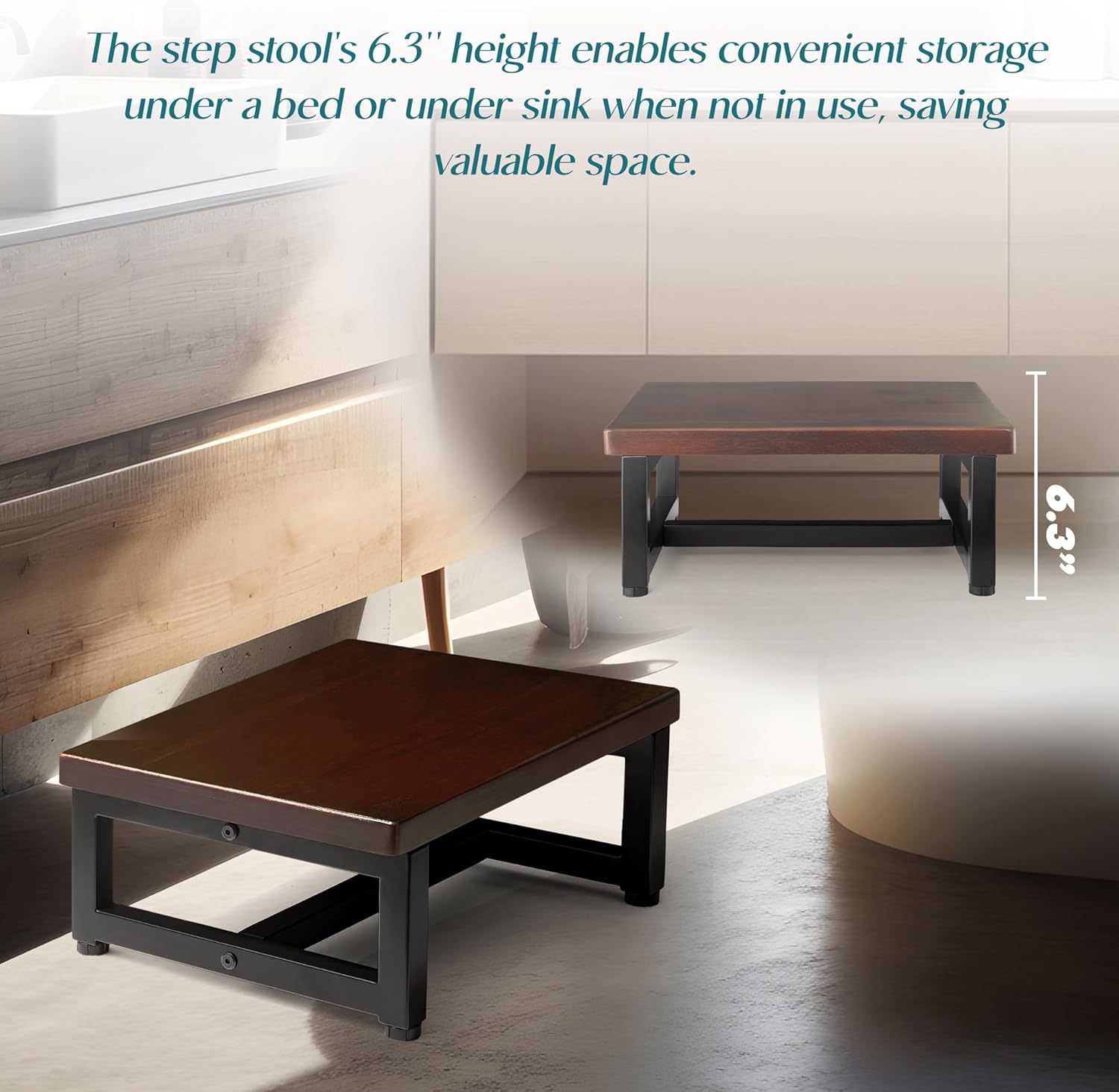 Wooden Step Stool – Heavy Duty One Step Stool for Adults, Supports Up to 500 lbs – Sturdy Wood and Steel Frame with Non-Slip Feet – Safe & Durable for Kitchen, Bathroom, Bedroom & More