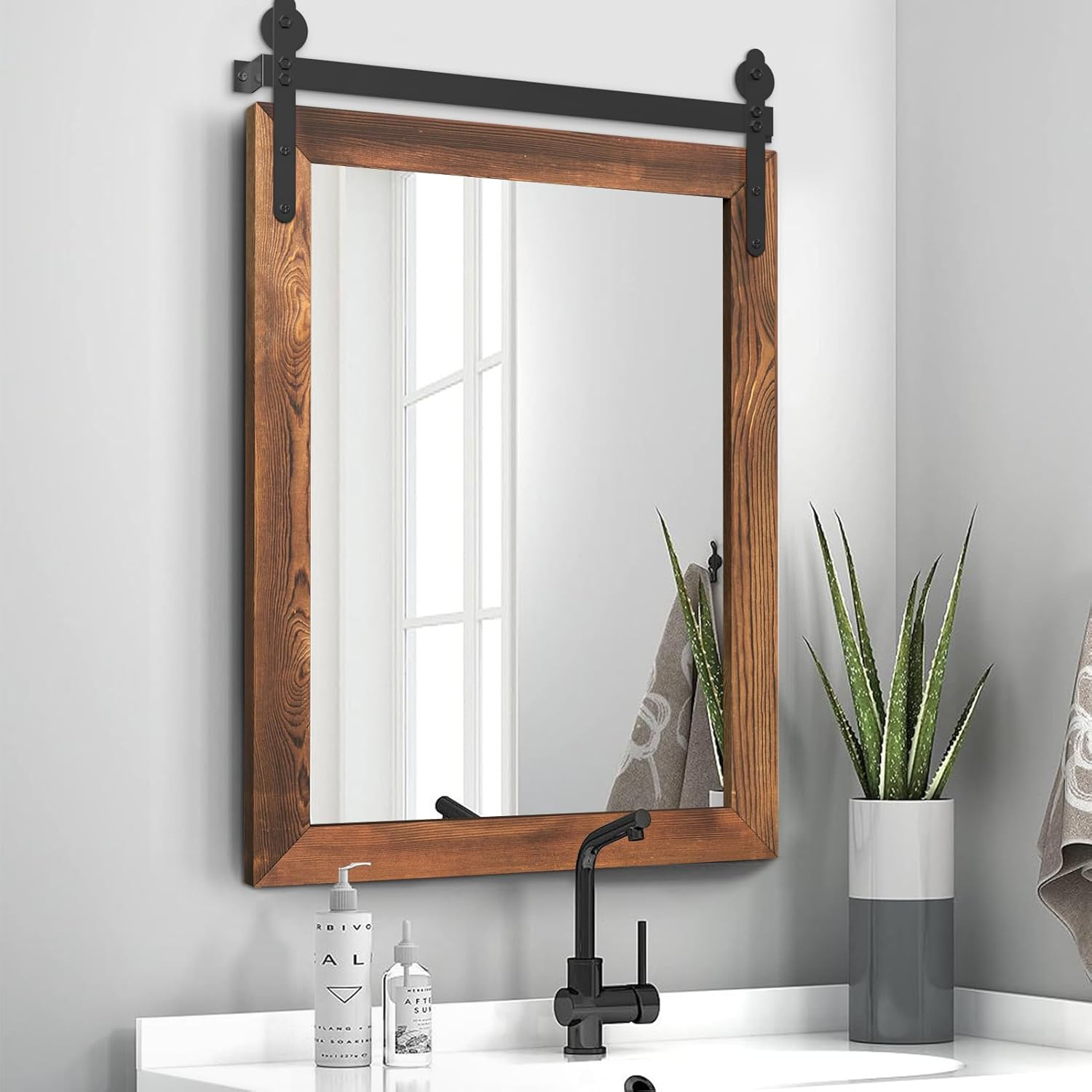 - Multi-scenario Use: This rustic wood framed mirror can be applied to different rooms and spaces, such as bedrooms, bathrooms, entry doorways, etc. This flexibility allows users to choose the installation location of the farmhouse mirror more freely to meet different needs. For example, if you want to install a rustic mirror in your bathroom, the durability and scratch-resistant properties of this mirror can give you more peace of mind.