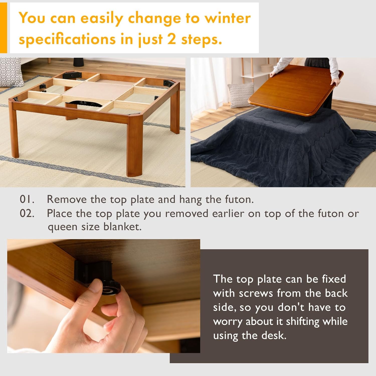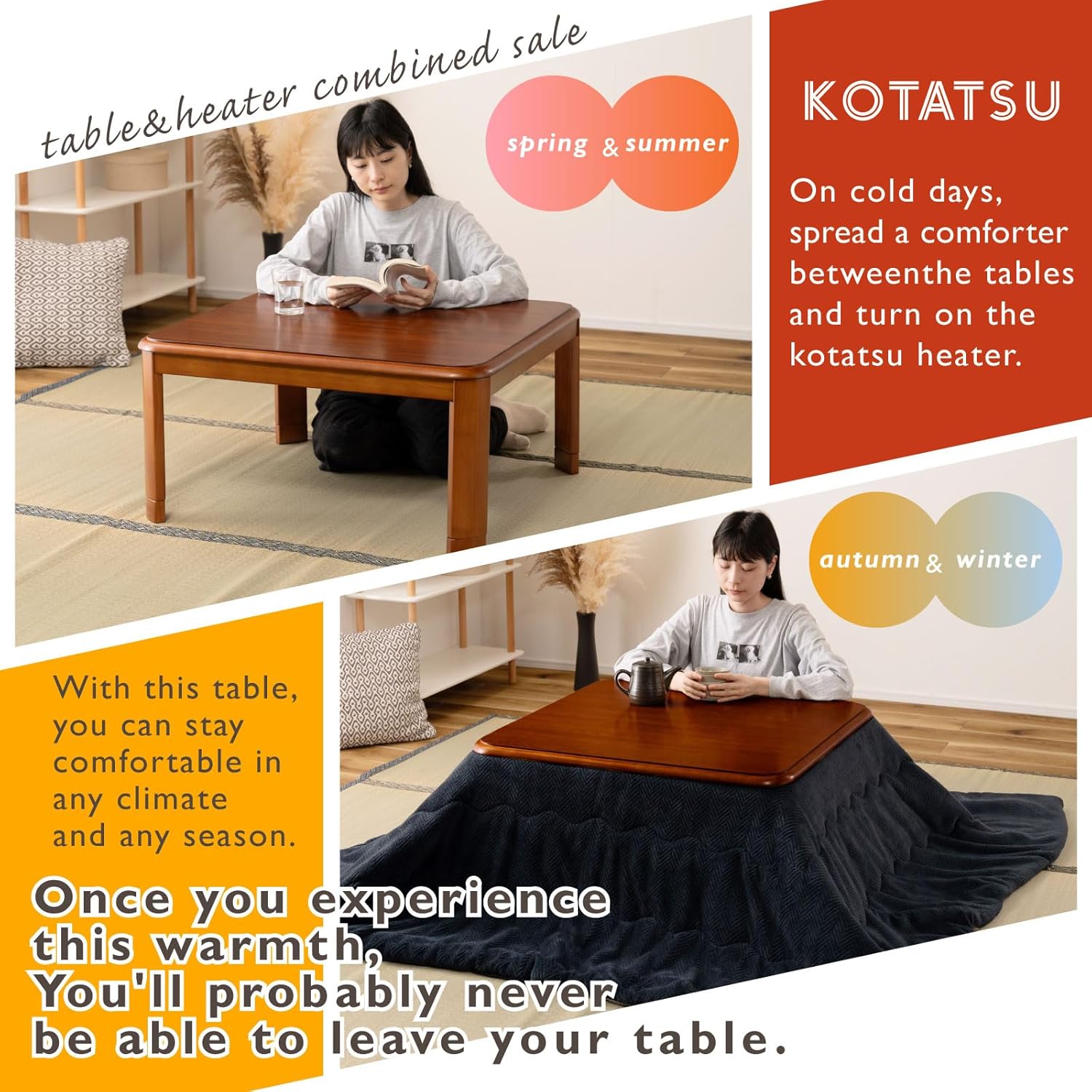 - [What is Kotatsu?] Kotatsu is traditional japanese coffee table with heater. Best in cold climate, also can be used as a coffee table in summer.