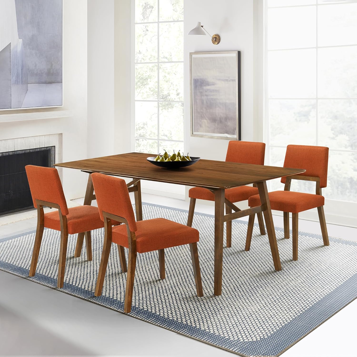 Armen Living Channell Mid Century Modern 5 Piece Walnut Wood Dining Table Set with Orange Fabric