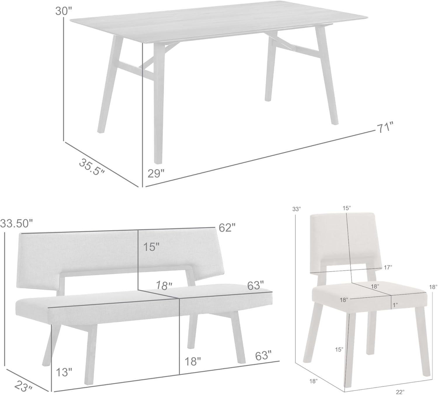 - Included Components : 1 x Dining Bench, 1 x Dining Table, 4 x Dining Chair