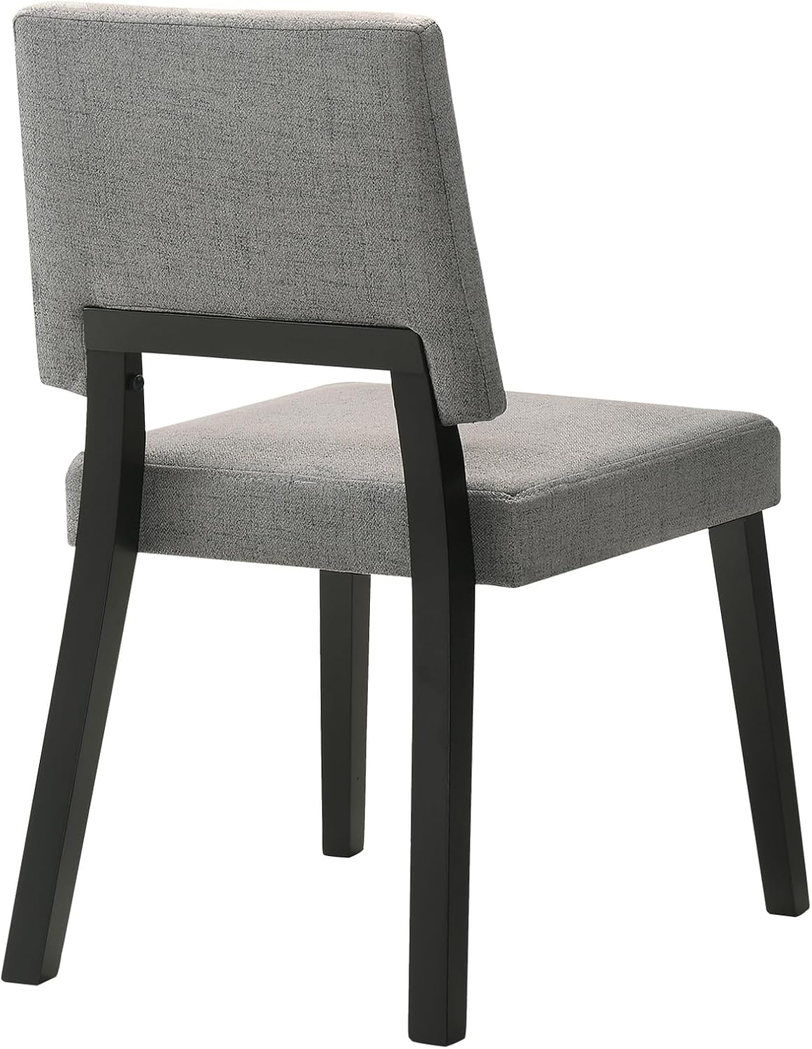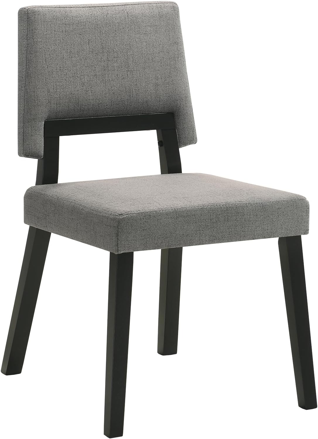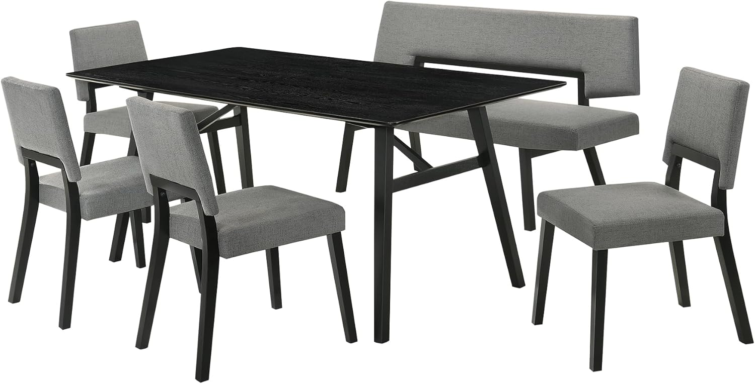 Armen Living Channell Mid Century Modern 6 Piece Black Wood Dining Table Set with Bench in Charcoal Fabric