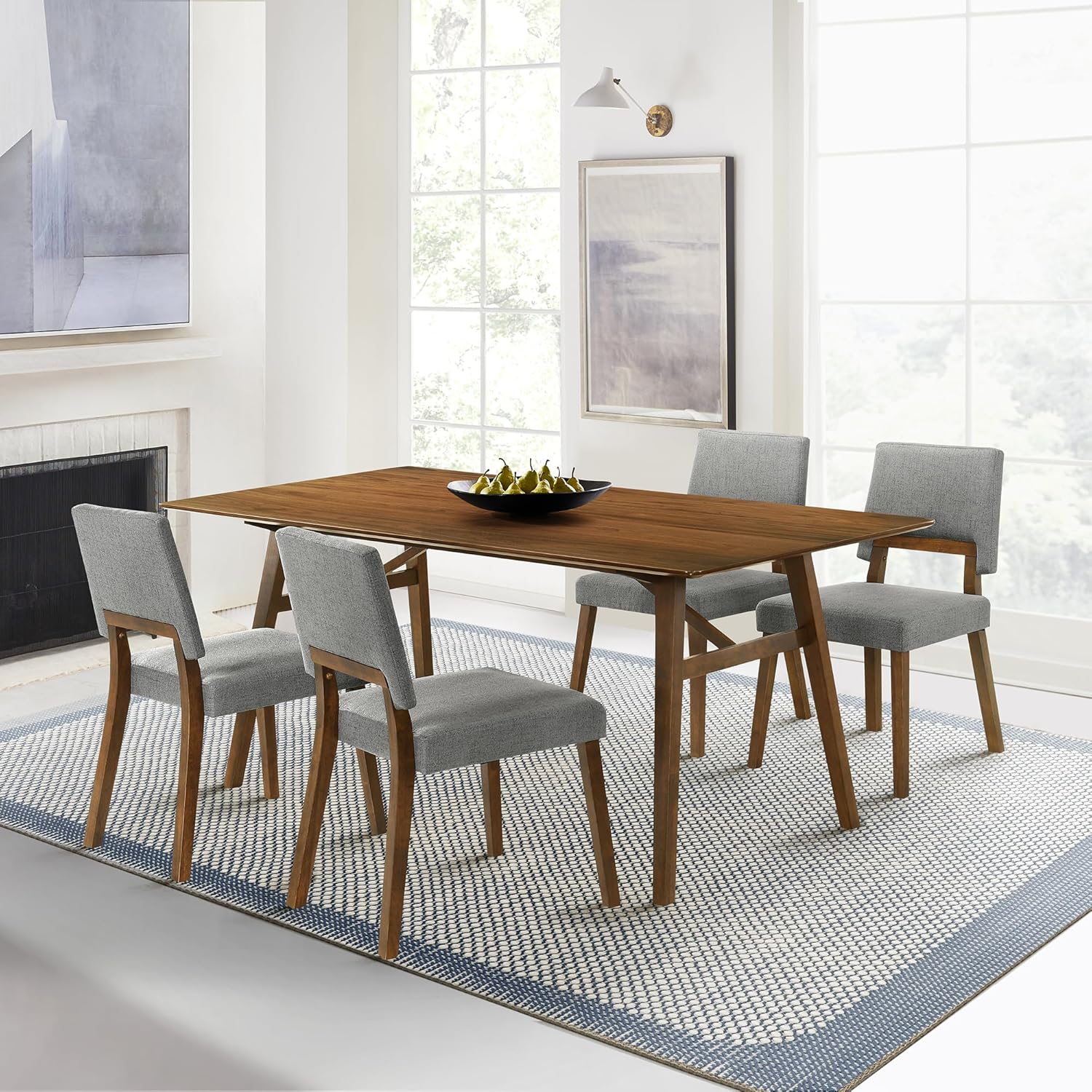 Armen Living Channell Mid Century Modern 5 Piece Walnut Wood Dining Table Set with Charcoal Fabric