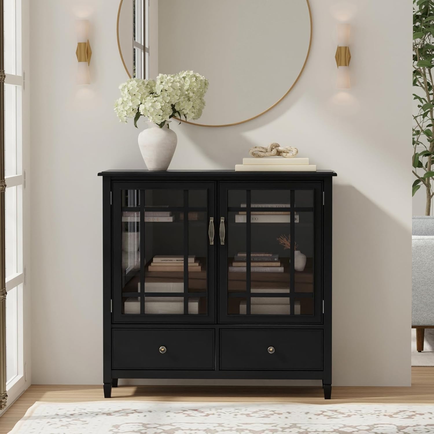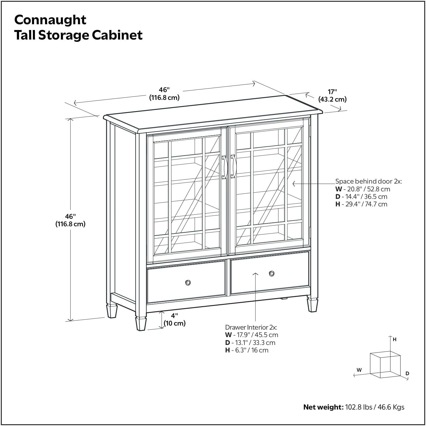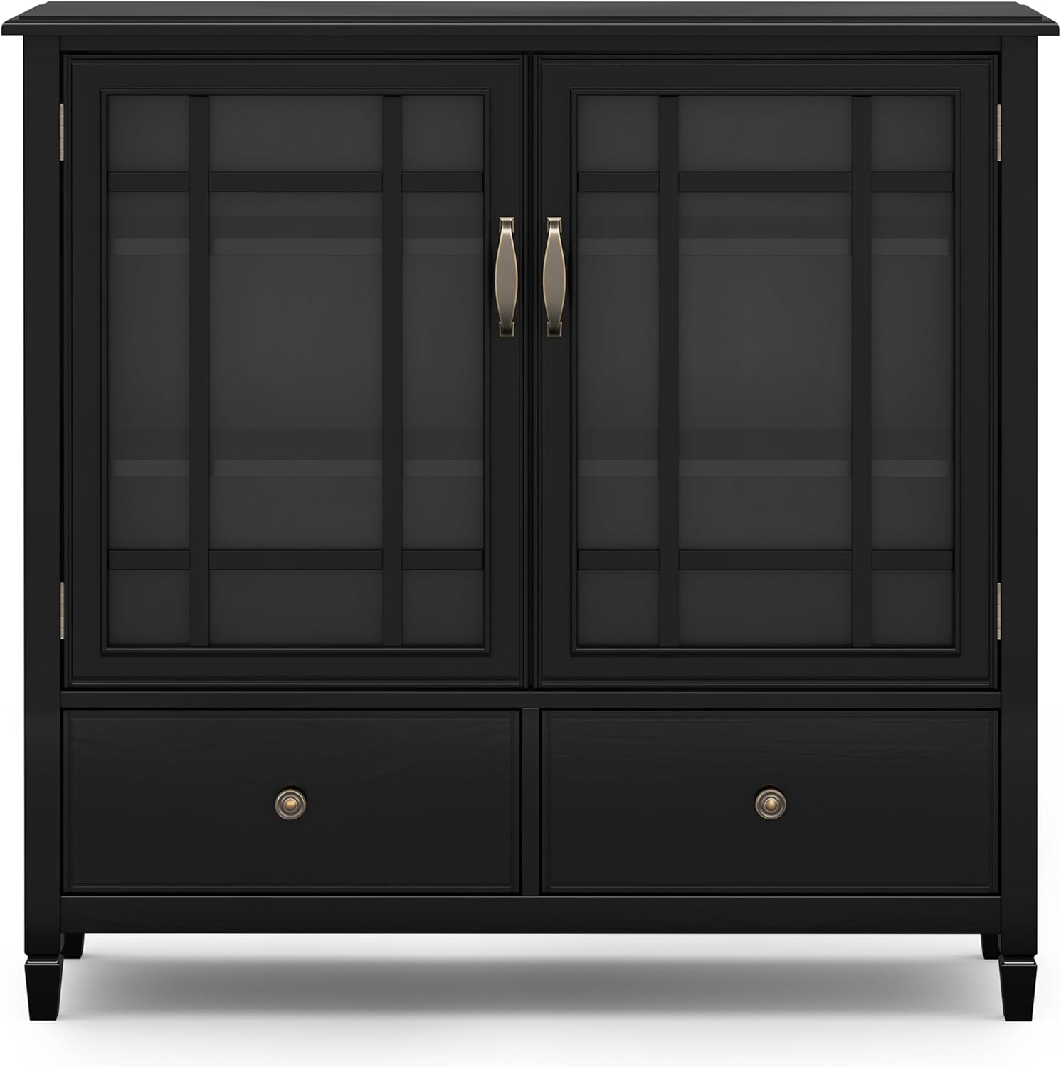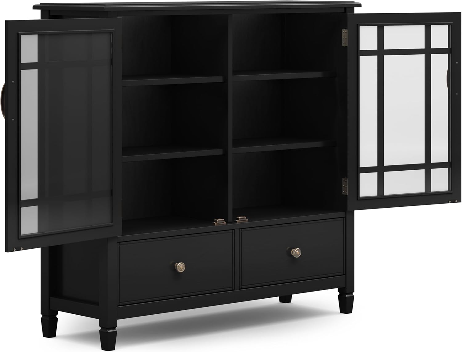 SIMPLIHOME Connaught SOLID WOOD 46 inch Wide Traditional Tall Storage Cabinet in Black for the Living Room, Entryway and Family Room