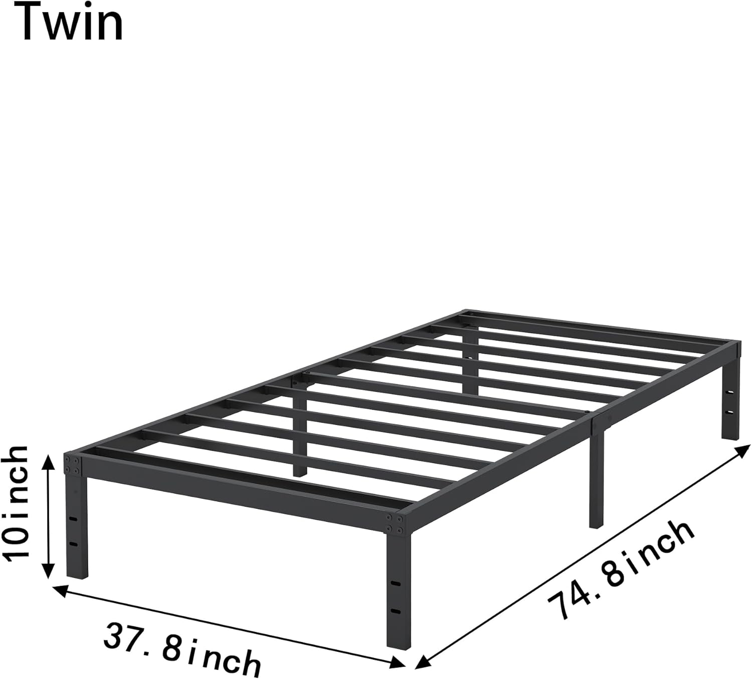 10 Inch Twin Bed Frames, Platform Metal Bed Frame Twin Size Heavy Duty Steel Slat Mattress Foundation, No Box Spring Needed, Easy Assembly, Noise-Free, Black