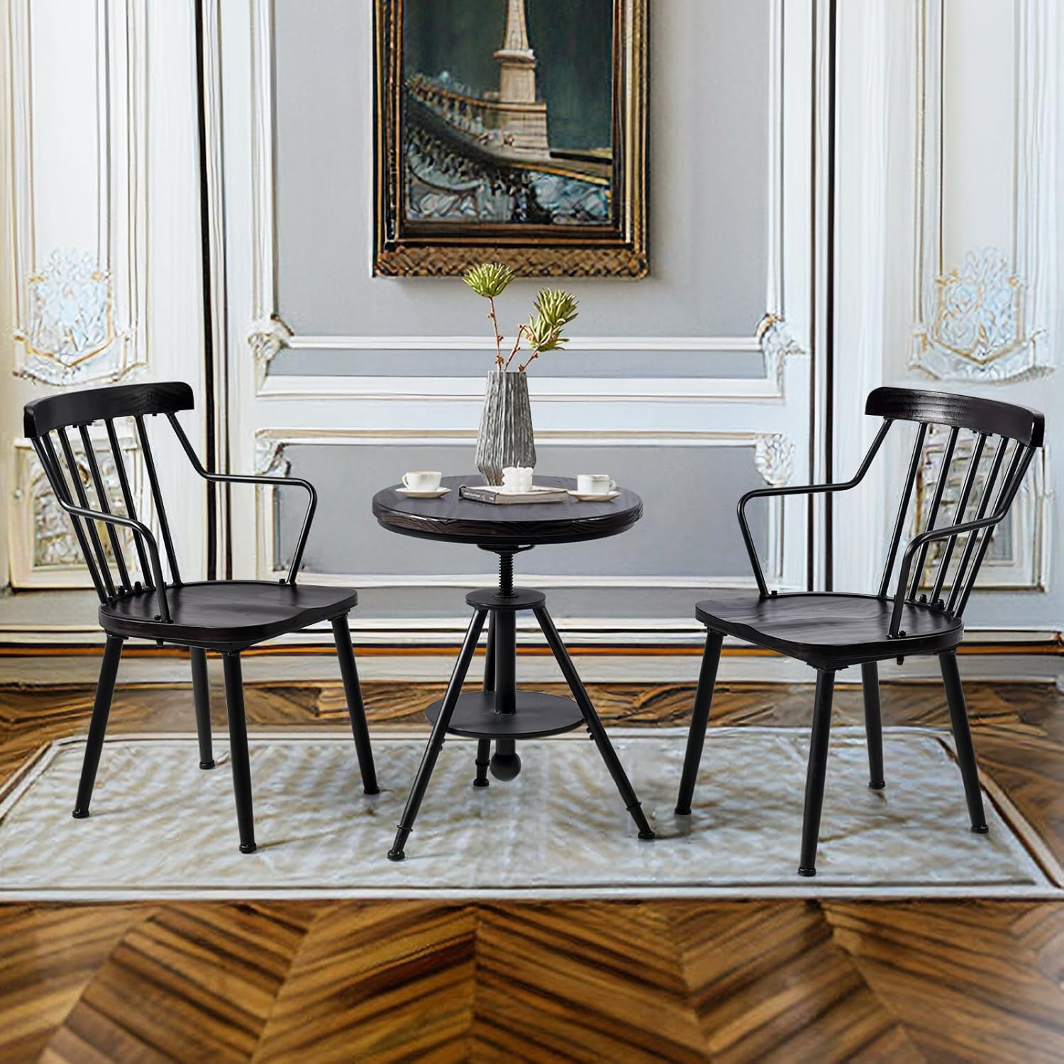 Industrial Vintage Cafe Farmhouse Dining Table - Rustic Round Wooden Top, Height Adjustable 21-29in
