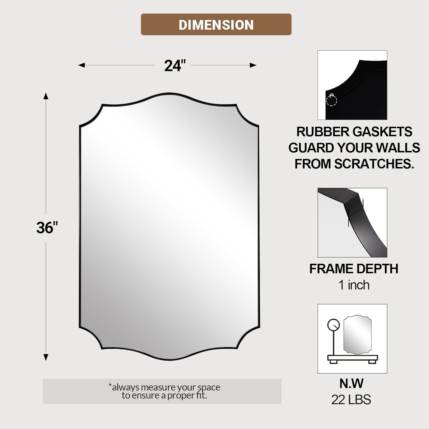 - 【Sophisticated Curved Design】: With captivating asymmetry and irregular shapes, this 24x36 scalloped mirror is a work of art. Whether you have contemporary, minimalist, rustic, or eclectic bathroom decor, our 24x36 black mirror effortlessly blends in, adding a touch of individuality and character to any space