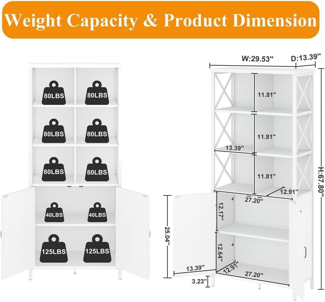 FATORRI Tall Bookshelf and Bookcase, Industrial Bookshelf with Doors, Bookcase with Storage, Cube Storage Organizer Bookshelves, Wood Book Shelf for Living Room, Home Office (White Oak, 67 Inch)