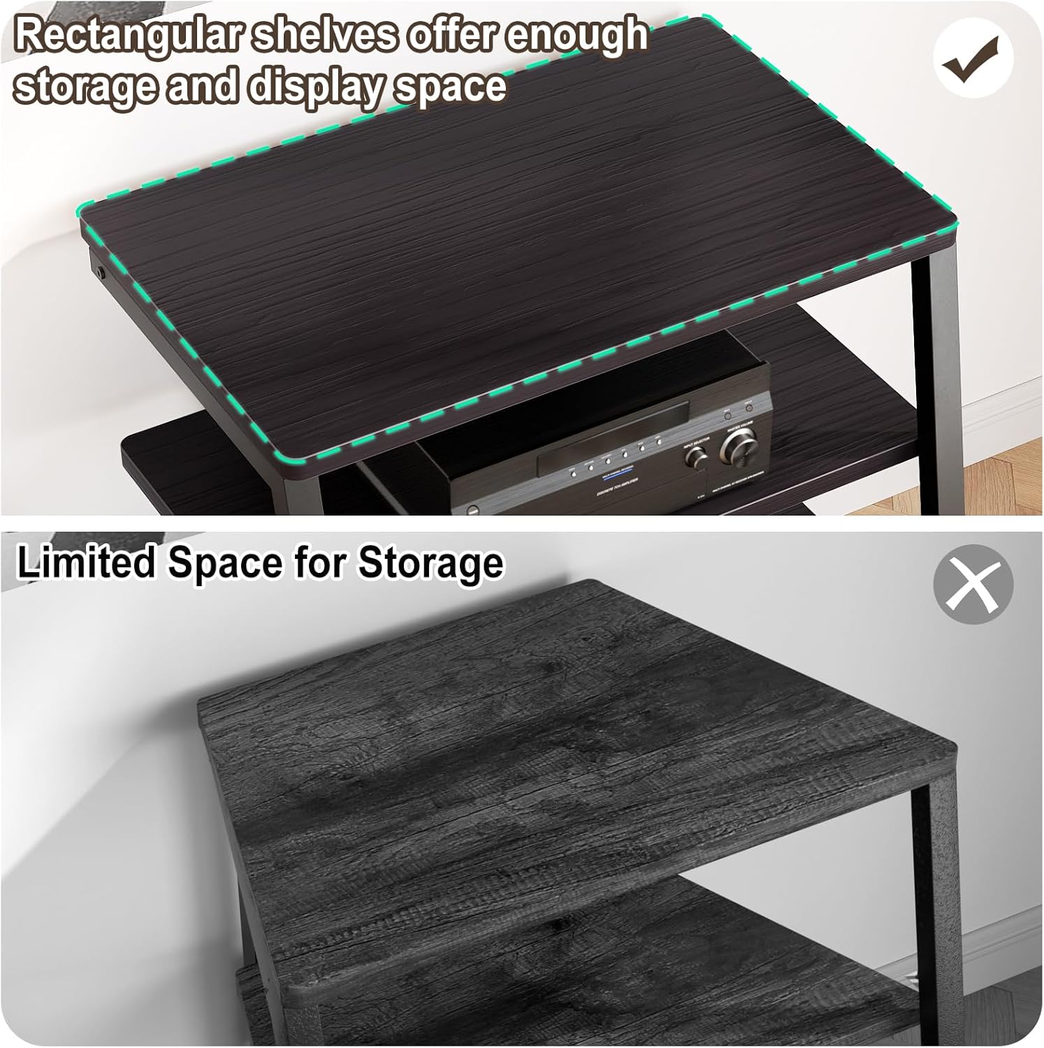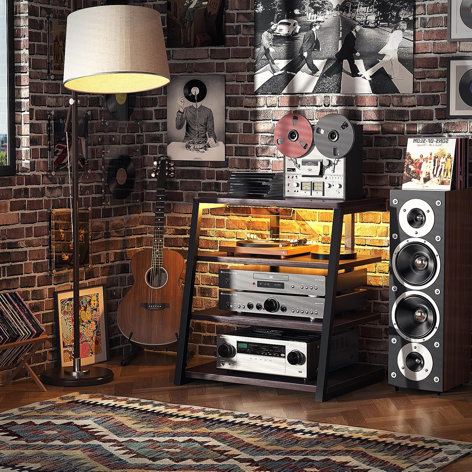 Armocity 4-Tier AV Media Stand with Power Strips, Stereo Stand with LED Lights, Rack Audio Tower with Adjustable Shelves, Small Entertainment Center, 30'', Black Ebony