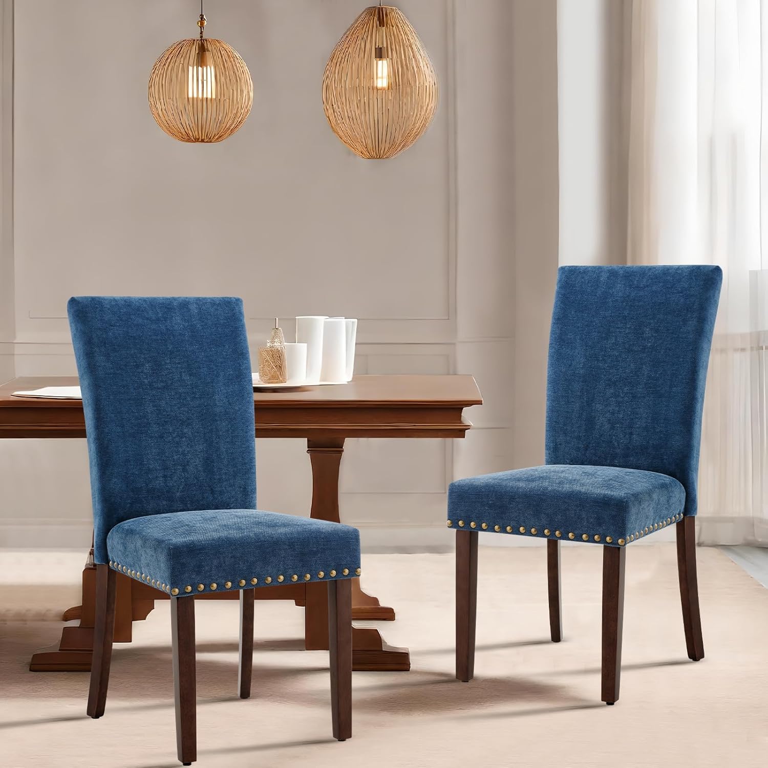 COLAMY Upholstered Parsons Dining Chairs Set of 4, Fabric Dining Room Kitchen Side Chair with Nailhead Trim and Wood Legs - Dark Blue