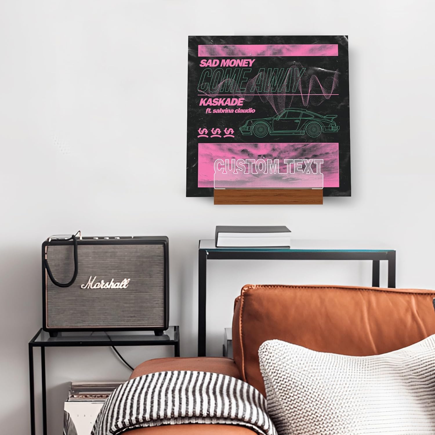 Customized Vinyl Record Stand, Light up Record Holder, Wooden Acrylic Display with Warm White Lights for Albums, Room Decor, for Vinyl Lovers