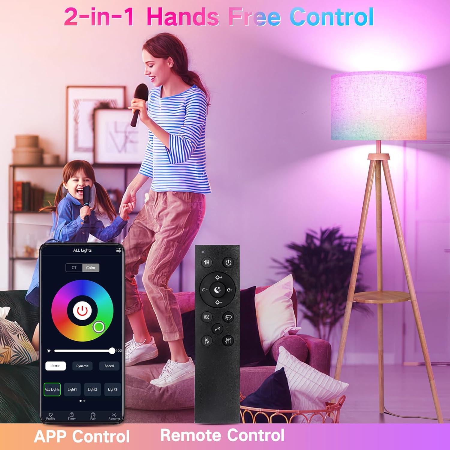 - Remote Control & Foot Switch: The floor lamp with shelves adopts a combination remote control & foot switch, which is convenient for you to turn on/off the light. You can also use the remote control to adjust the brightness and color temperature without leaving the bed or sofa (with a 50ft range). In addition, you can set a 1-hour timer mode to avoid the trouble of forgetting to turn off the light.