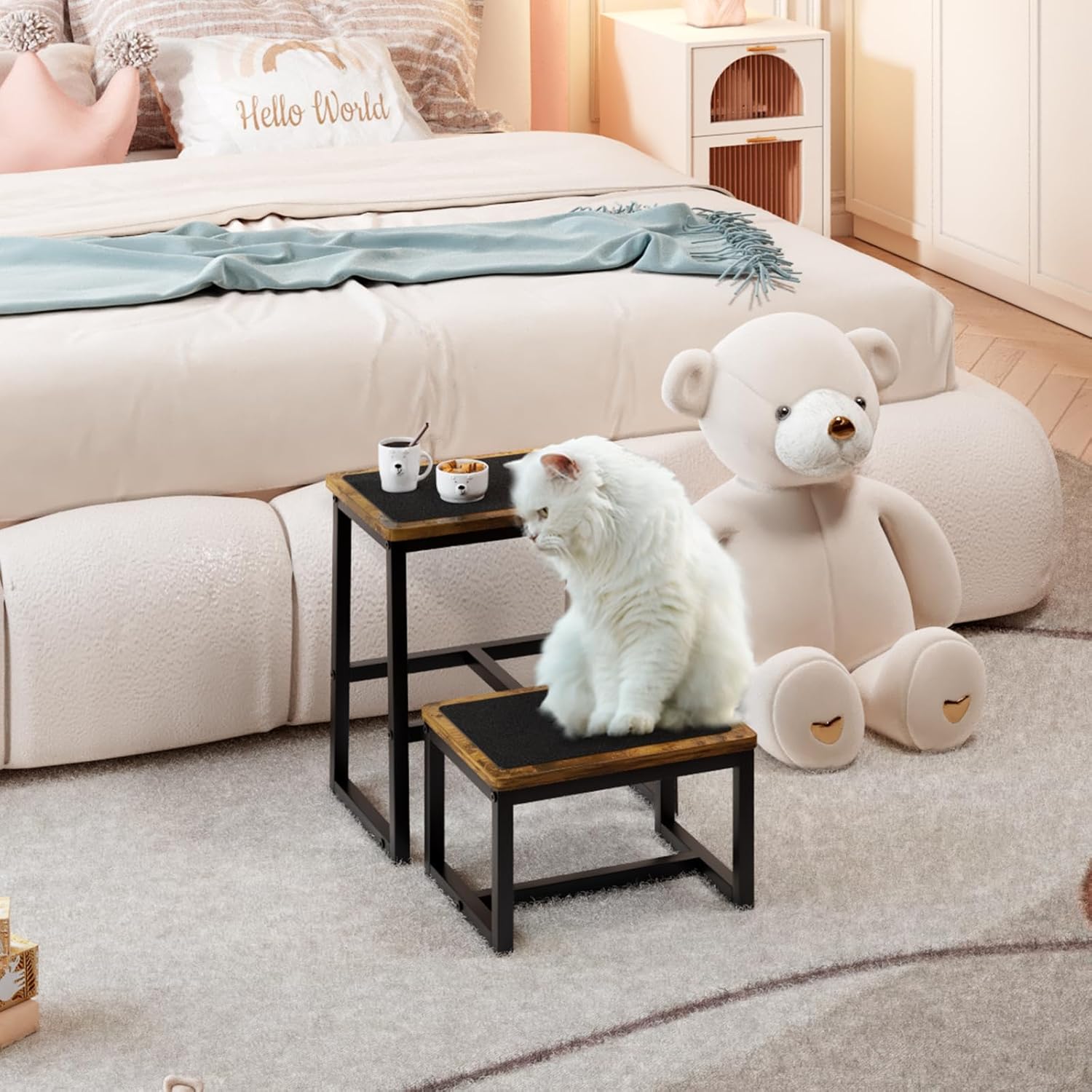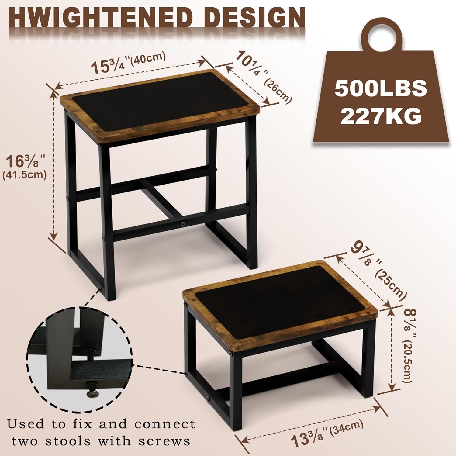 Step Stool for Adults,Holds up to 500Lb,3 in1 Heavy Duty Sturdy Two StepStools for Kichen/Bathroom/High beds, Wooden&Metal Frame, Non-Slip Pads