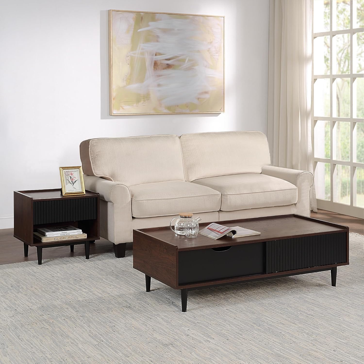 - SMART STORAGE: The center table has 1 full extension drawer & a cubby shelf space, while the side table offers a full extension drawer and a thin open shelf, ensuring ample storage for your essentials