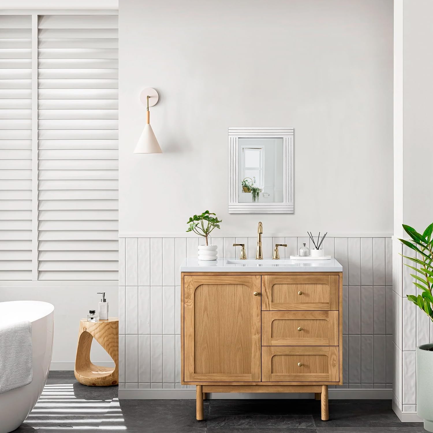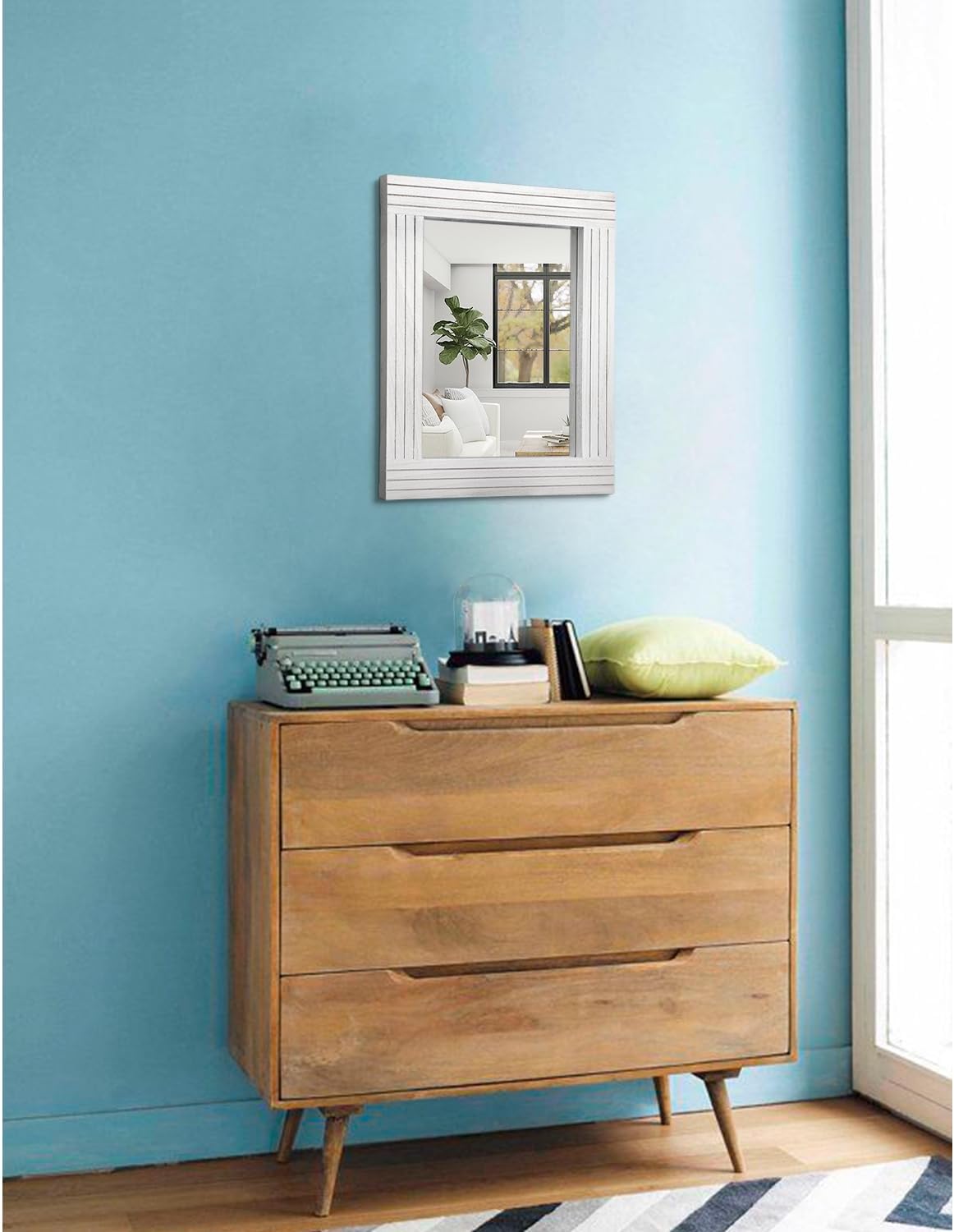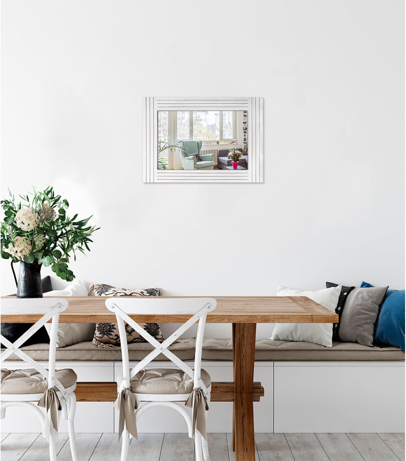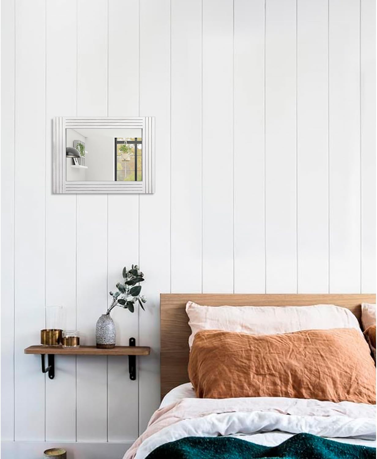 Wood Mirror Rectangular Framed Rustic Vintage Mirrors Decor Farmhouse Bedroom Bathroom Mirror for Dressing Table Entrance Small 16"x12" White