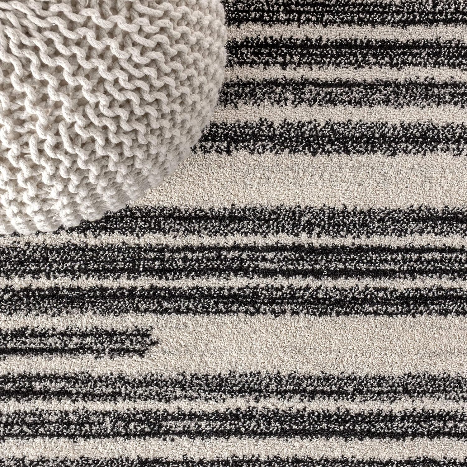 JONATHAN Y Khalil Modern Berber Stripe Cream/Black 3x3 Square Indoor Area Rug, Contemporary, Bohemian, Easy-Cleaning for Living Room, Bedroom, Kitchen, Pet Friendly, Non-Shedding (MOH207A-3SQ)