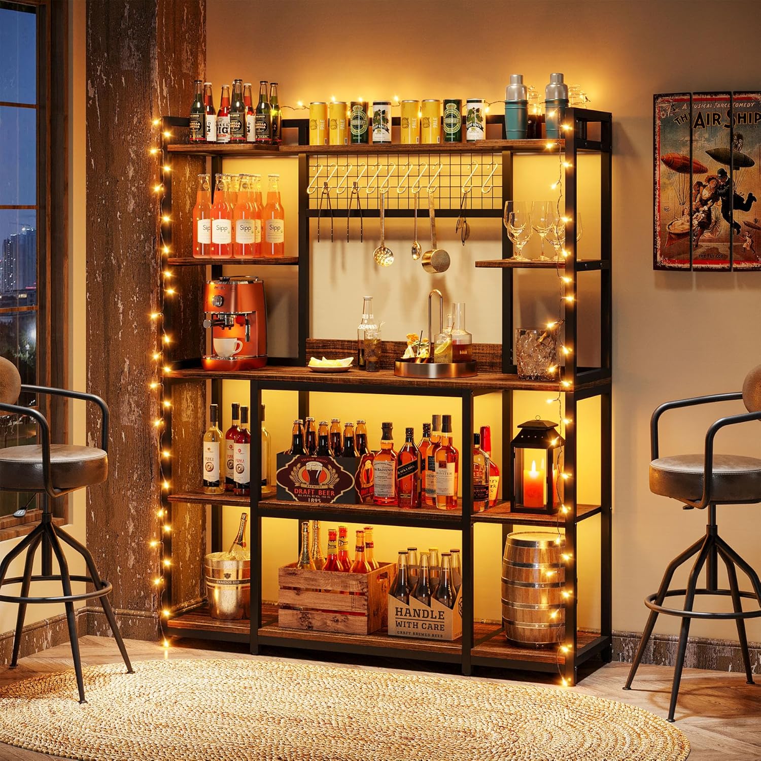 - AMPLE STORAGE SPACE - With multi-layer design, the 5-tier bakers rack features different-sized sections, a sturdy metal grid, and 11 S-shaped hooks, providing ample space and storage options for spice bottles, pots, dishes, microwaves, rice cookers, spoons, and much more! No matter what kitchen appliances you have, you can find suitable choices on this kitchen shelf pantry.
