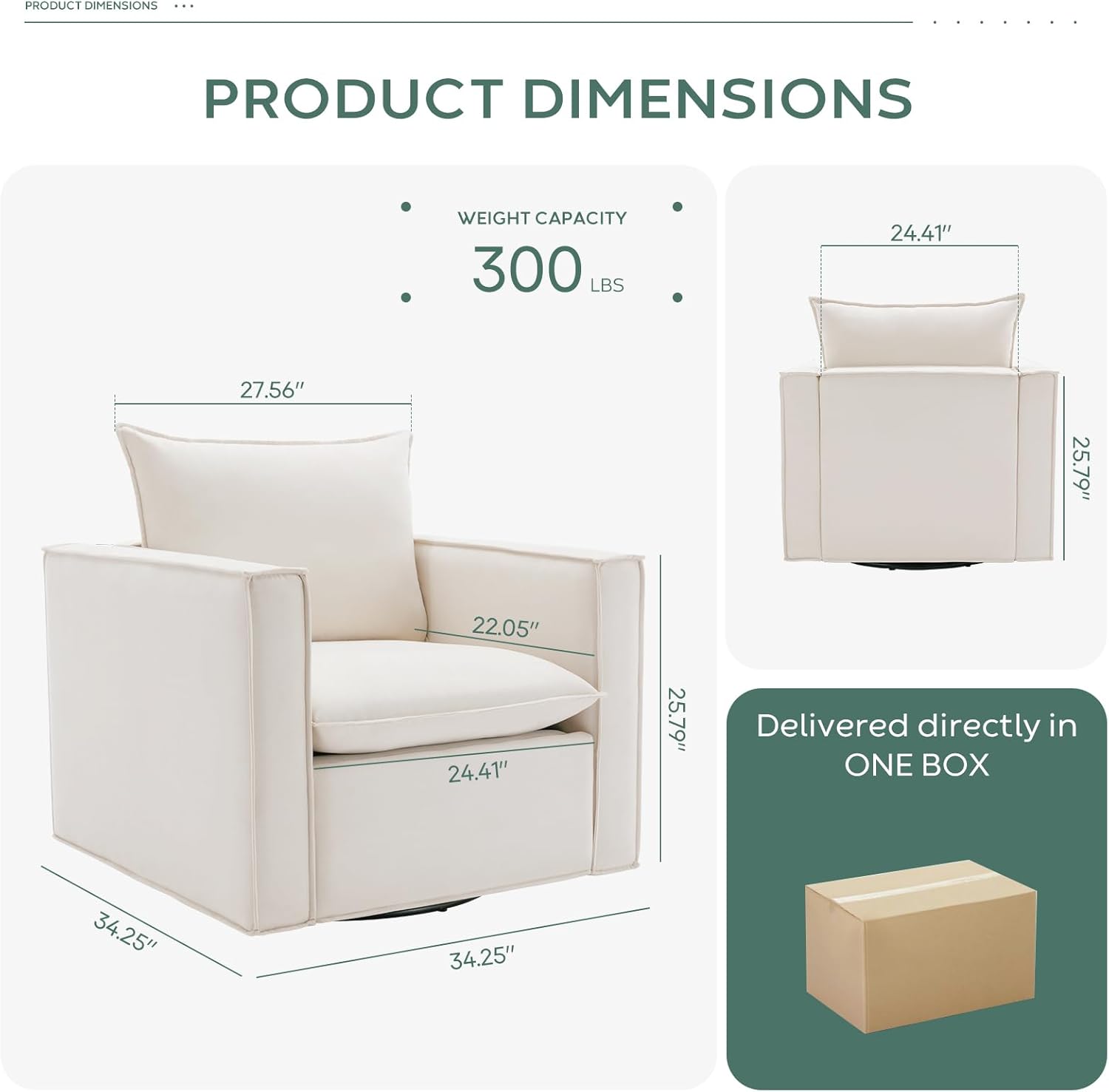 COLAMY Swivel Accent Chair, 34 Inches Upholstered Arm Chair with Plump Back Pillow, Modern Sofa Living Room Chair for Bedroom, Corner, Reading Beige