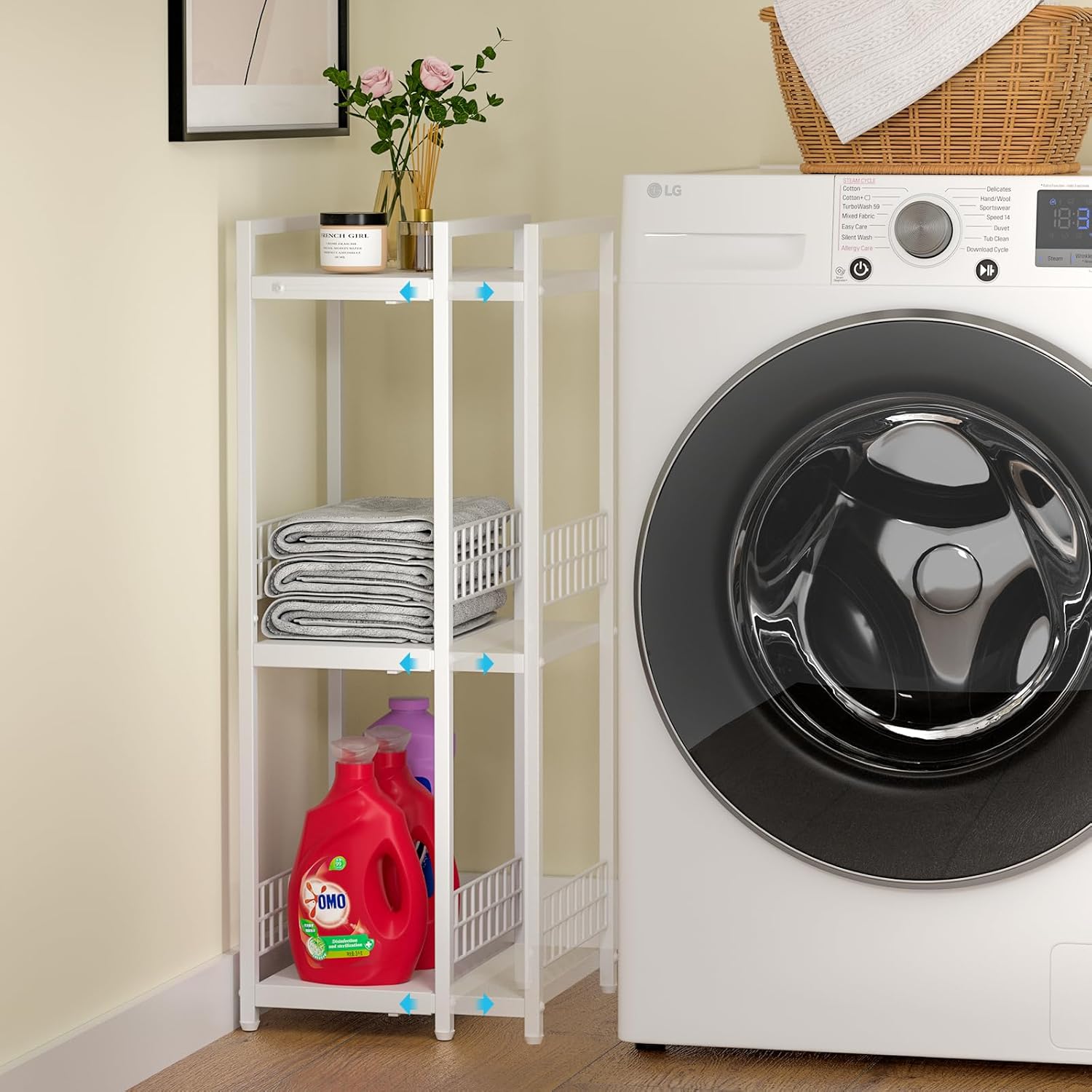 Expandable Slim Storage Shelf, 3 Tier Metal Shelving Unit for Bathroom Storage Organizer, Free-Standing Narrow Shelf, Open Floor Shelves for Small Spaces,Laundry,Bathroom,Kitchen, White