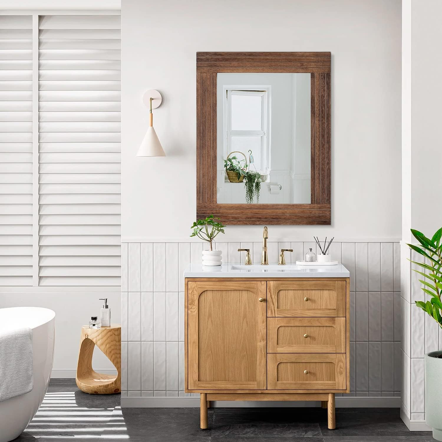 Rustic Mirror Wooden Rectangular Antique Wall Mirror Frame Decor Farmhouse Bedroom Dresser Bedroom Entryway Mirror Large Brown 26"x18"