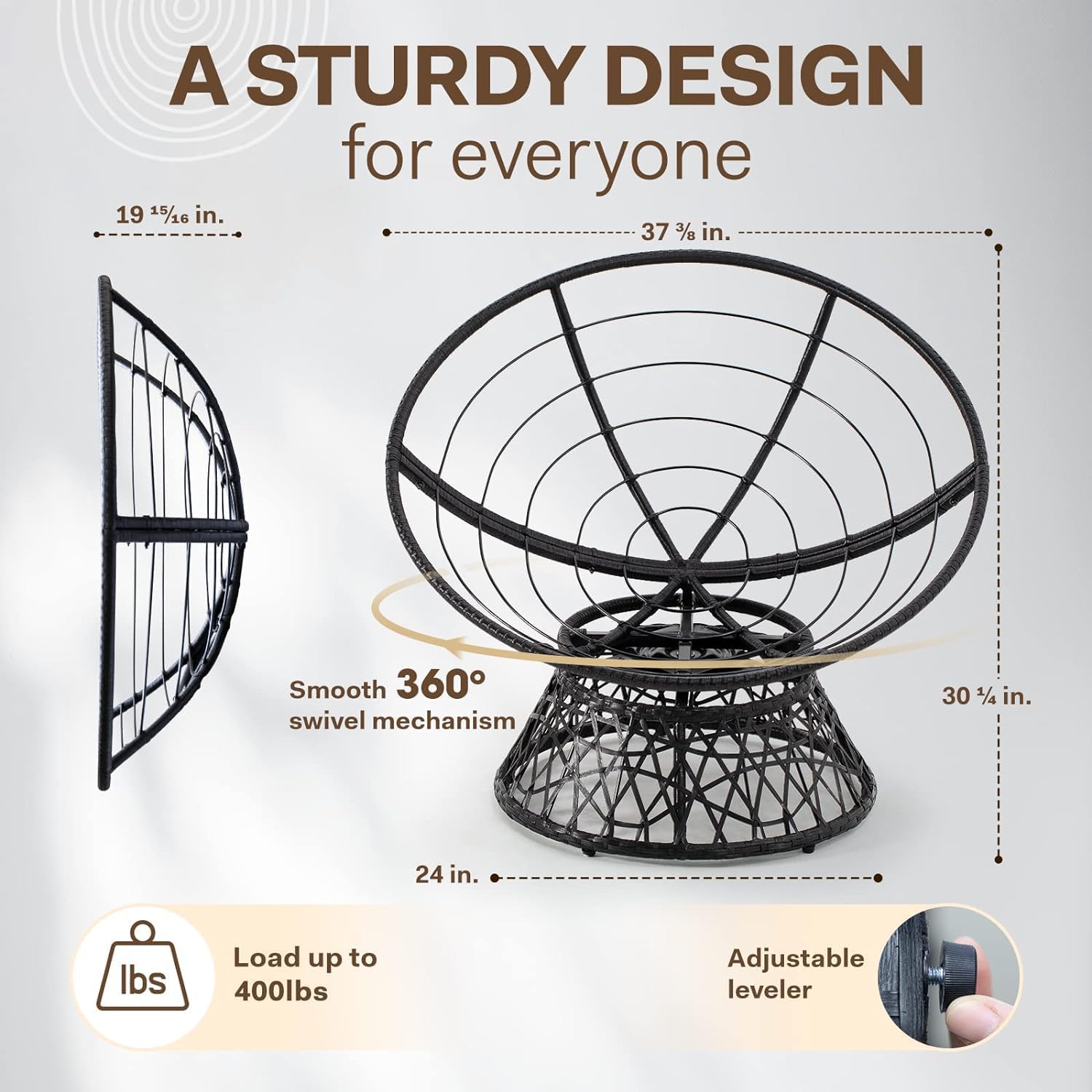 - 360-DEGREE SWIVEL: Built with sturdy metal frame and resin wicker, this big round chair features smooth 360-degree rotation and adjustable levelers for stability; Designed as a reading chair for adults, it’s ideal for multitasking or gaming