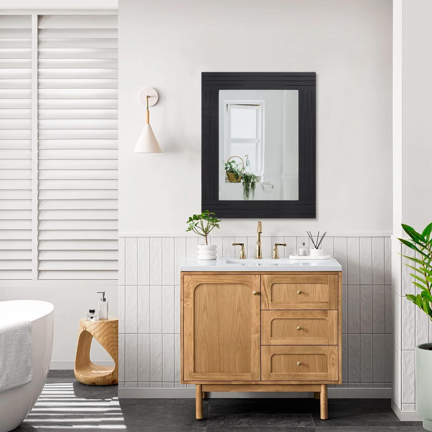 Black Vintage Rustic Wood Framed Wall Mirror Farmhouse Rectanglular Antique Decor Hanging Mirror for Bathroom Bedroom Living Room Entryway Large 20"x16"