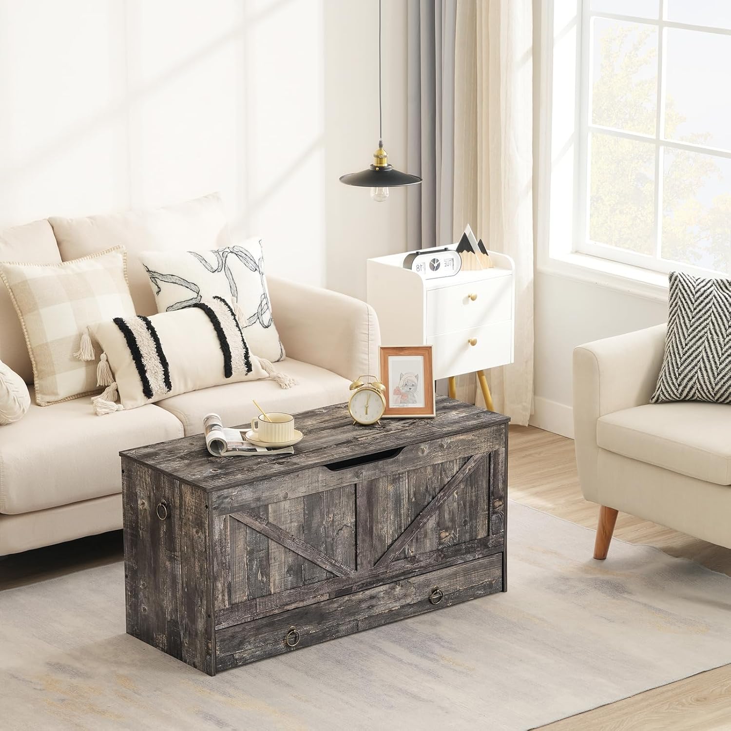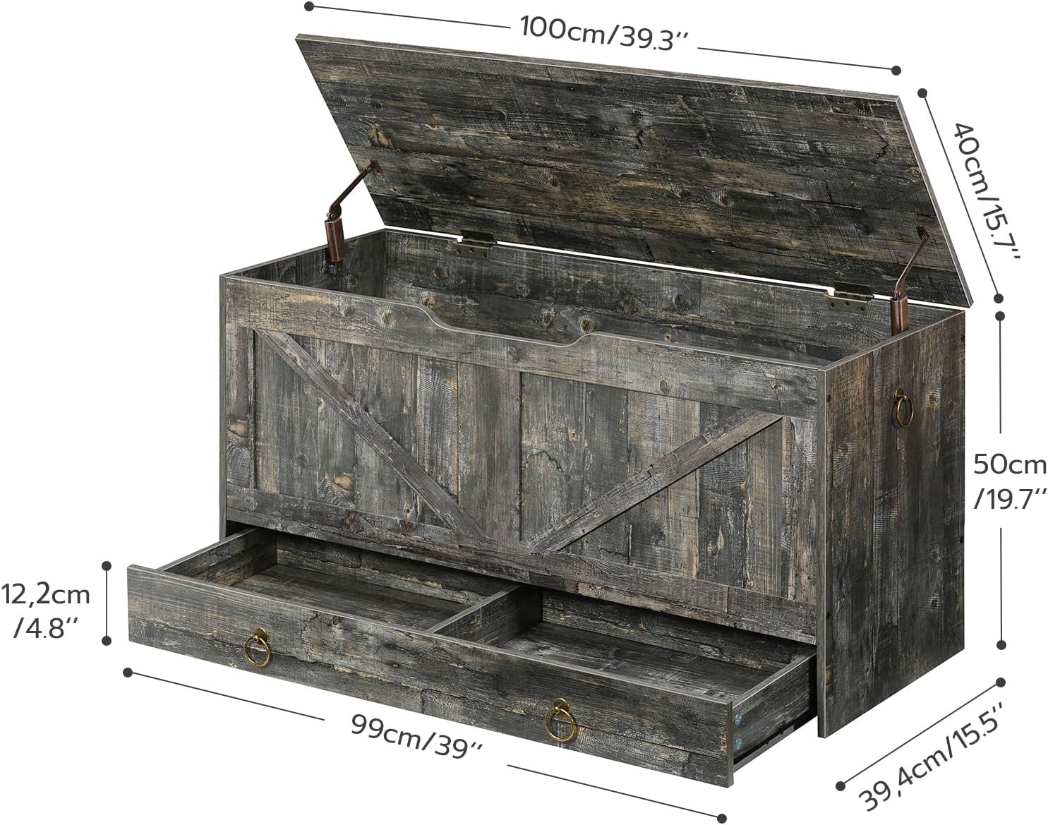 HOOBRO Storage Chest, 39.3" Toy Chest with Drawer, Wooden Storage Bench, Sturdy Entryway Bench Supports 220 lb, Shoe Bench, Safety Hinge, U-Shaped Opening, Easy Assembly, Vintage Gray VP710CW01G1