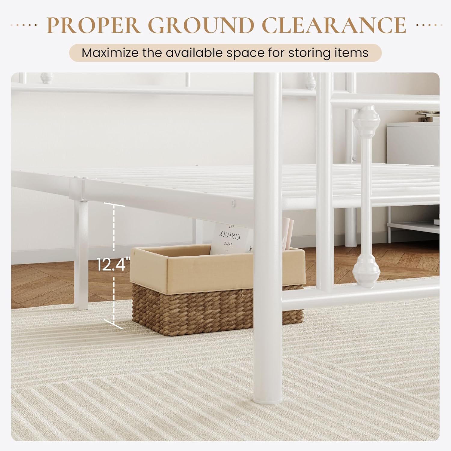 - Under Bed Storage Space: The ample 12.4'' underneath space offers a convenient solution for keeping your bedroom neat and organized while maximizing the available space for storing items such as clothing, shoes, bedding, or other belongings