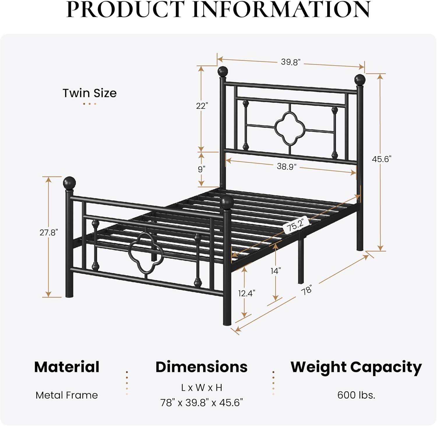 - Modern Design: With its sleek and minimalist design, our twin bed frame with headboard and footboard adds a touch of elegance and sophistication to any bedroom decor. Whether a contemporary or classic style, this victorian frame seamlessly blends in with its surroundings
