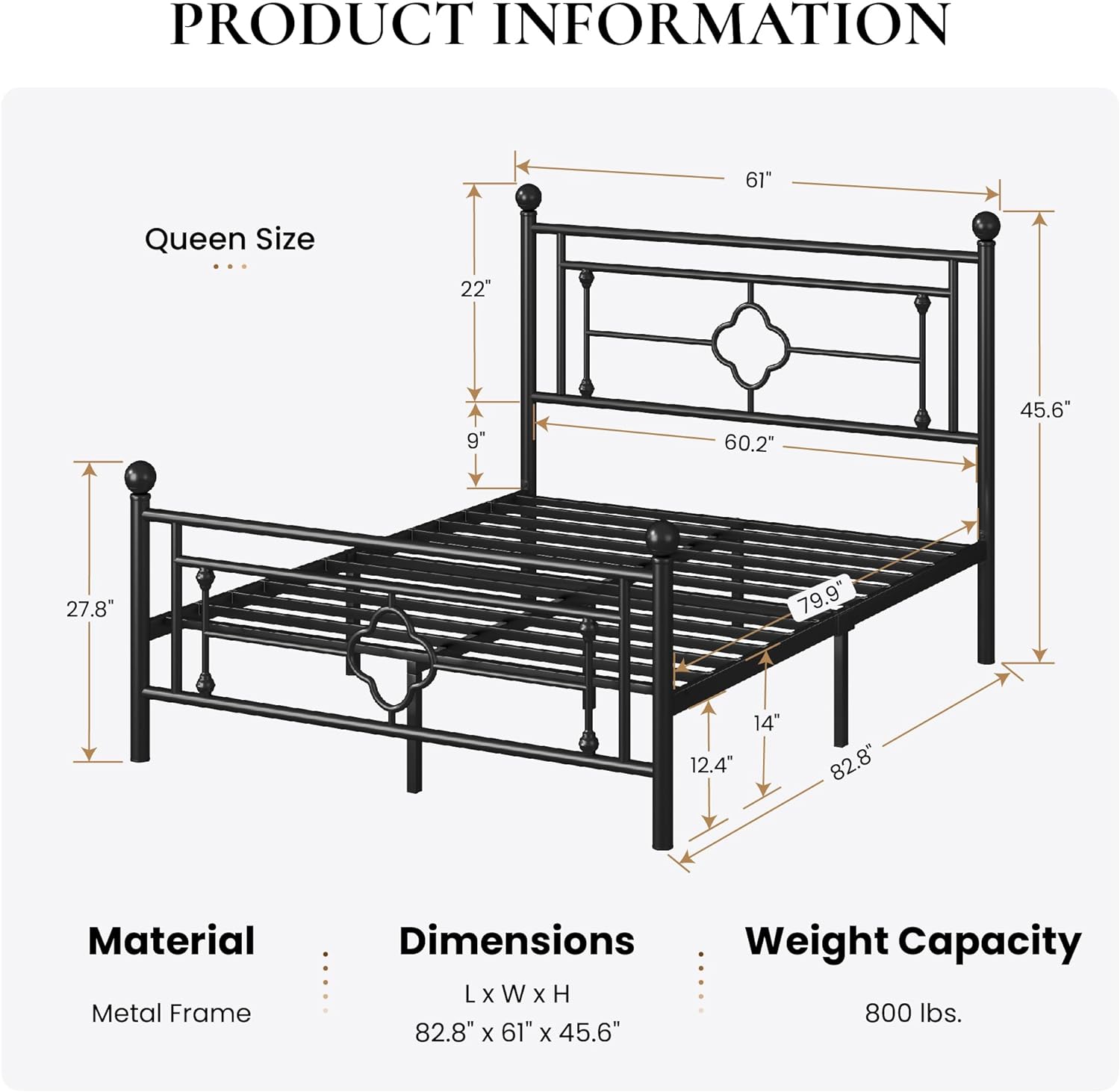 - Modern Design: With its sleek and minimalist design, our queen bed frame with headboard and footboard adds a touch of elegance and sophistication to any bedroom decor. Whether a contemporary or classic style, this victorian frame seamlessly blends in with its surroundings