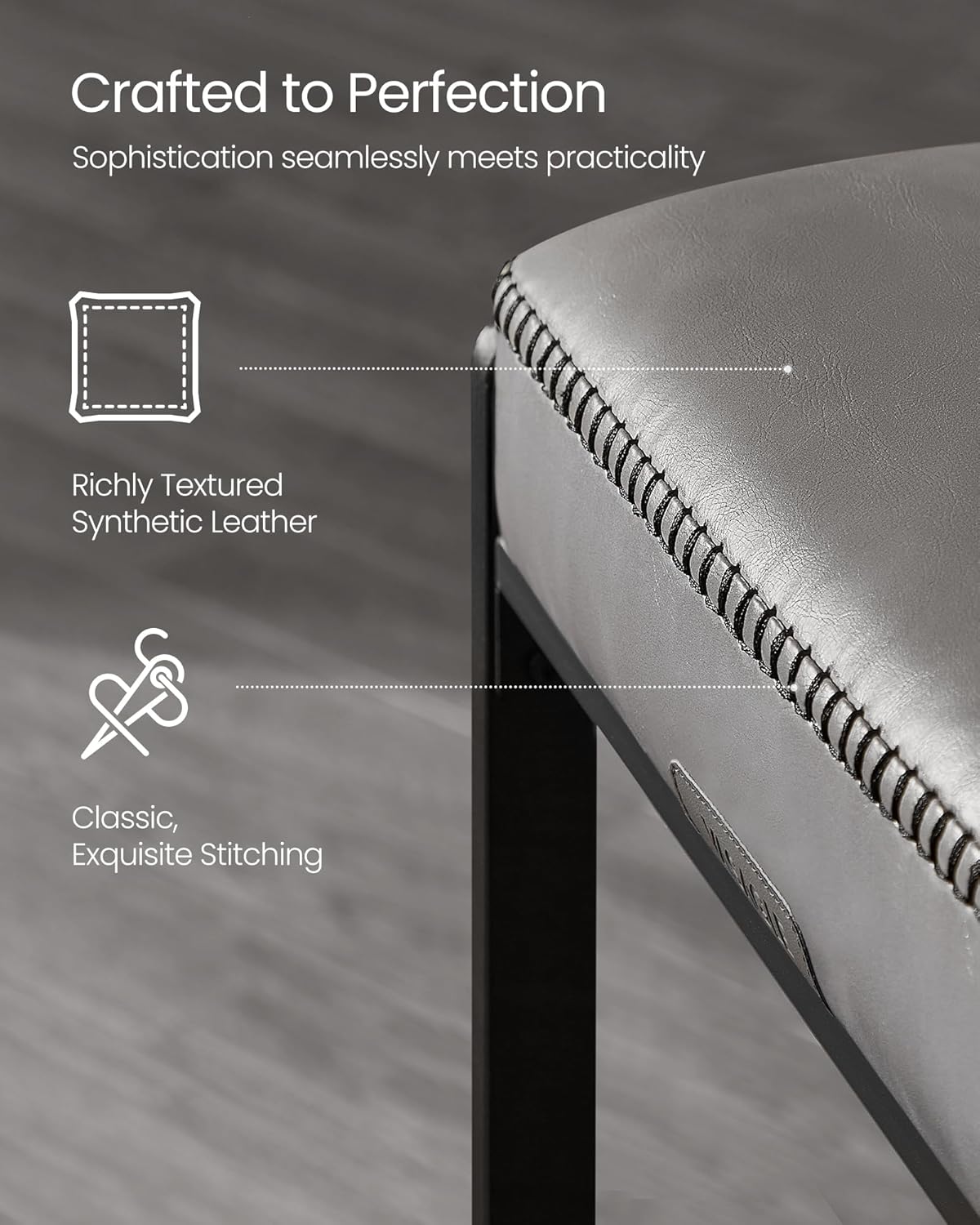 - [Style That Speaks] These bar stools come from our VASAGLE EKHO Collection—a furniture line that blends richly textured synthetic leather with refined stitching. A tangible homage to craftsmanship, it helps craft a home that speaks volumes about style