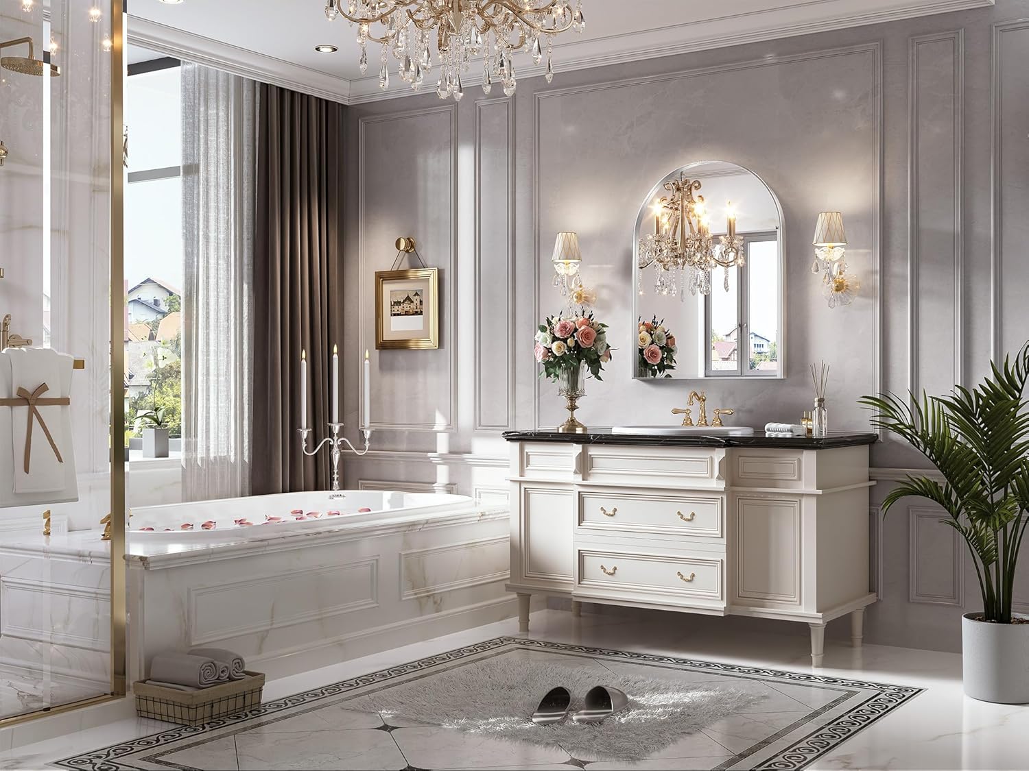 - Sturdy Metal Frame: Made of metal material. The arched mirror is surrounded by "seamless design" steel frame, which protects the mirror from rusting, and endow the mirror anti-water, shockproof, non-rusting more stable and extends longer life