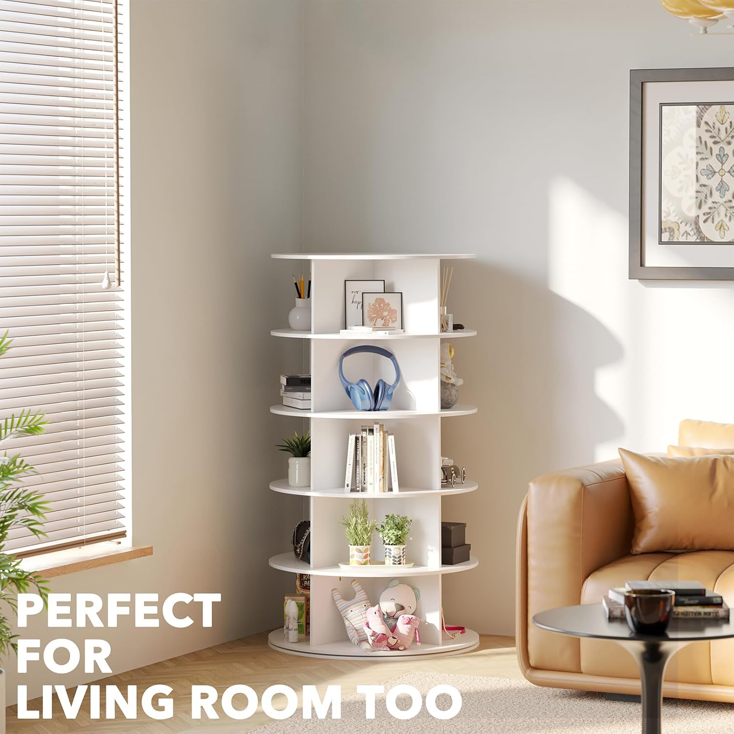 - 5-TIER SHOE DISPLAY HOLDER - Keep your home clean and keep track of your shoes better with this spinning shoe rack tower; Makes every shoe visible and save so much of your room closet storage space
