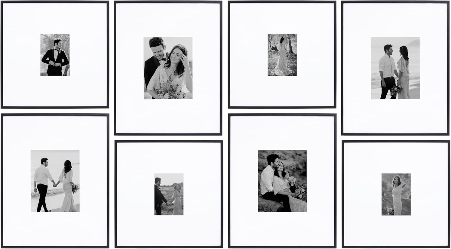 Camden Reed Arcadia 8 Piece Oversized Gallery Wall Frame, 16x20 and 16x16 Inch Matted Frames for Featuring 8x10 and 5x7 Inch Photographs or Art Prints, Black Finish