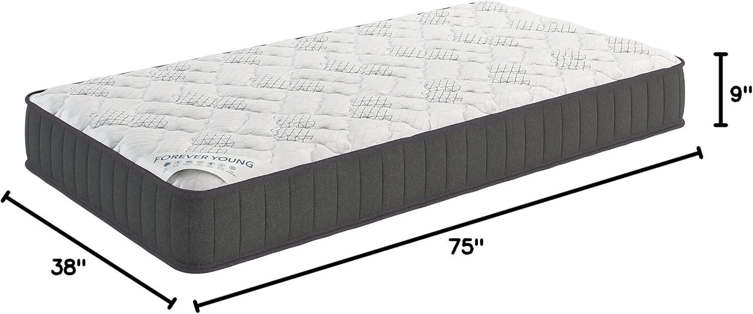 Ottomanson Twin 9" Hybrid Mattress - Medium-Firm Support - Made in USA - Individually Pocketed Coils & CertiPUR-US Foam - Fiberglass-Free - Bed in a Box