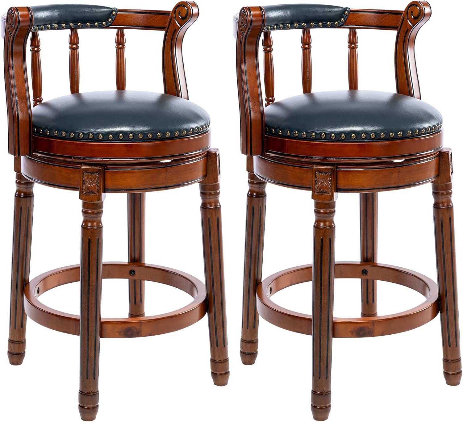 Cow top Leather Wooden Bar Stools, 360 Degree Swivel Bar Height Chair with Backs for Home Kitchen Counter, Morden Chair Barstools (Dark Blue 2pcs, Counter Height-Seat Height 26”)