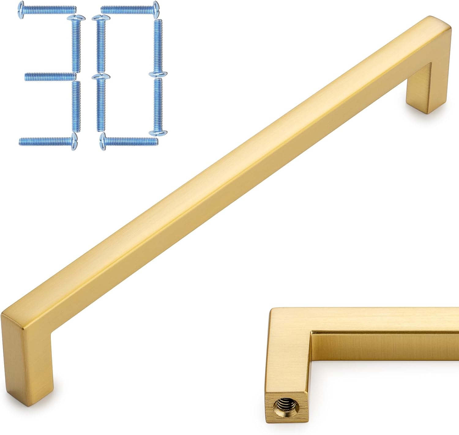 - Pack of 30 brushed gold square bar cabinet pull handles, solid metal hardware.