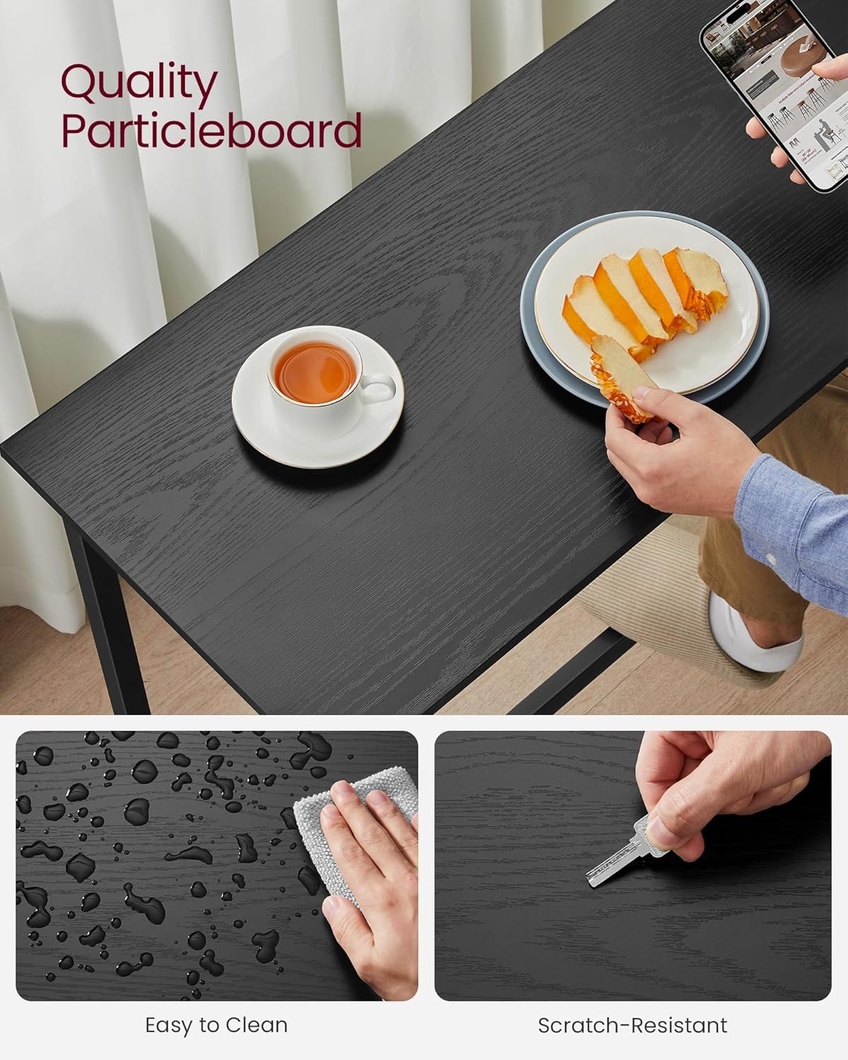 - [So Simple, So Good] Sometimes a simple breakfast of bread and cheese is all you need; this simple bar table with metal legs and a smooth ebony black finish is all your dining area needs