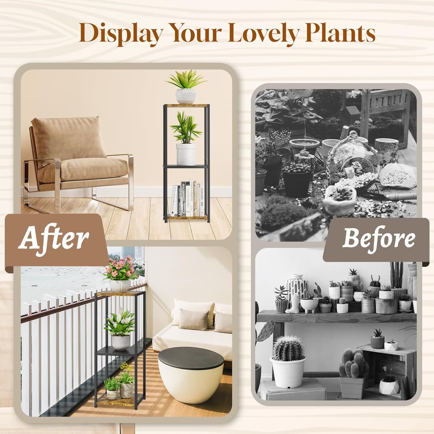 - 【Great for Plant Lovers】: Sturdy and attractive corner plant stand comfortably hold a variety of plants, flowers and potted plants on each level. Display your favorite plants and create a clean and simple vibe to match your home decor and furniture.