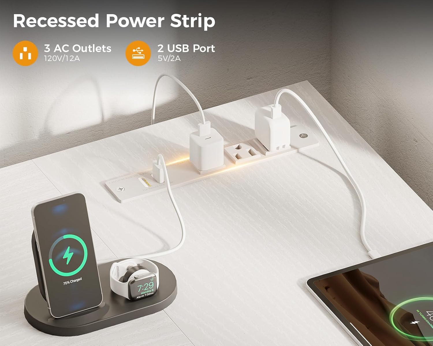 - 【USB Charging Ports & Power Outlets】This L shaped gaming desk comes with a built-in power outlet, which provides 3 AC outlets and 2 USB ports. This desk streamlines device charging, ensuring both convenience and safety. Whether for gaming or intense work sessions, stay fully powered up without messing up your space with additional extension cords.