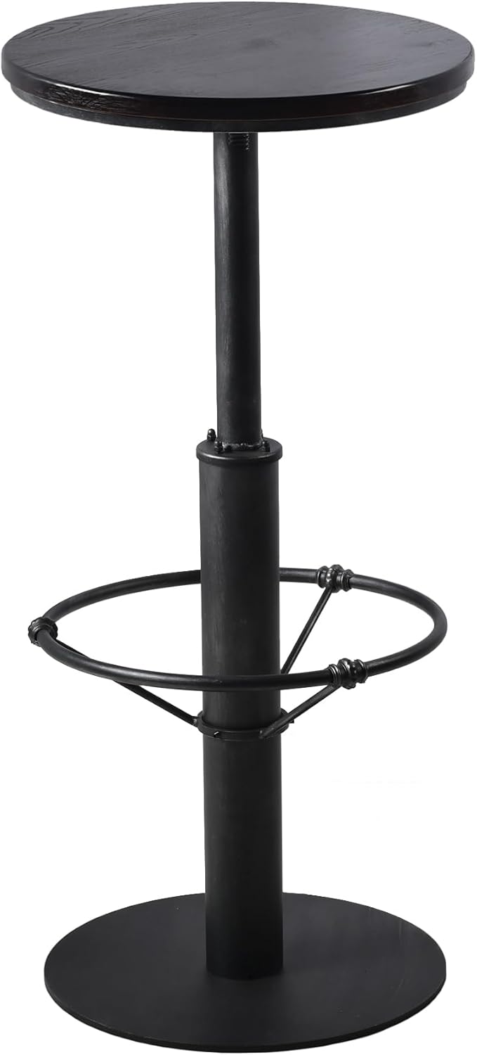 - ✎Features a round wooden top with natural grain, smooth silver grey iron body, and unique adjustable footrest rail,this bar table reflects the design aesthetics of industrial machinery.