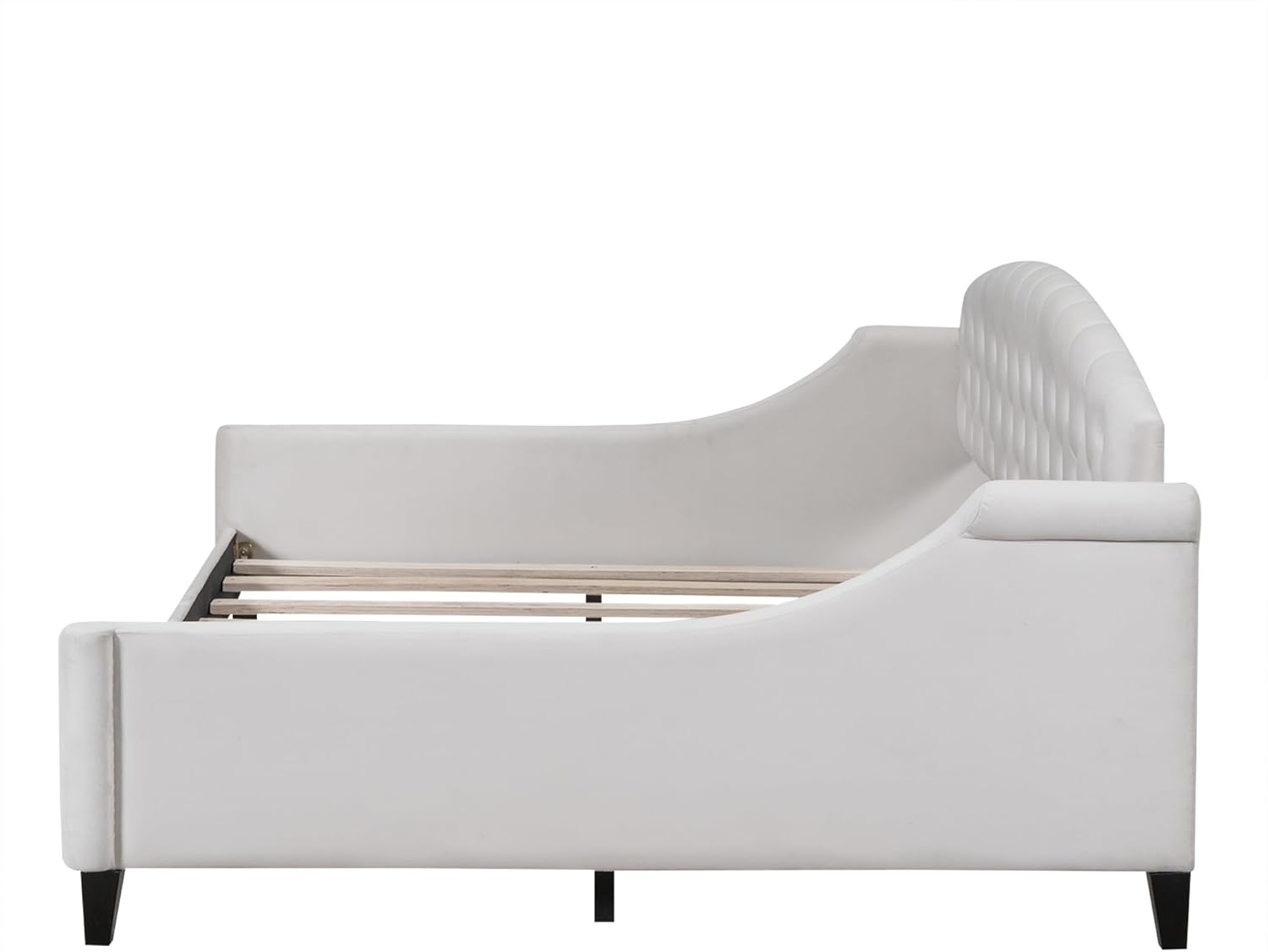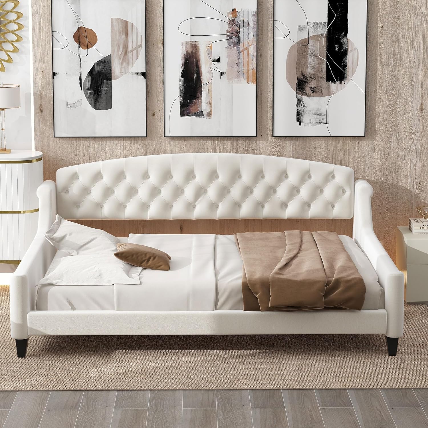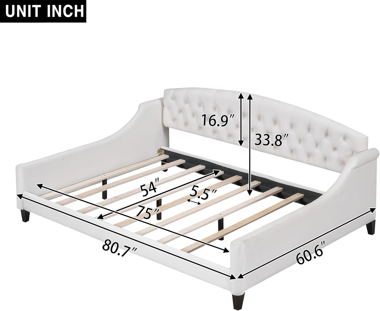 Full Size Modern Luxury Tufted Button Daybed, Stylish Wood Upholstered Day Bed,No Box Spring Required, Easy Assembly,for Bedroom,Living Room and Guest Room,Den,Office,Beige