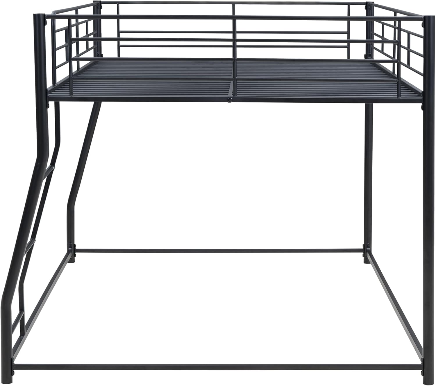 Full XL Over Queen Metal Floor Bunk Bed with Sloping Stairs and Safety Guardrails for Bedroom,Guest Rooms, No Box Spring Needed, Simple to Assemble,Black