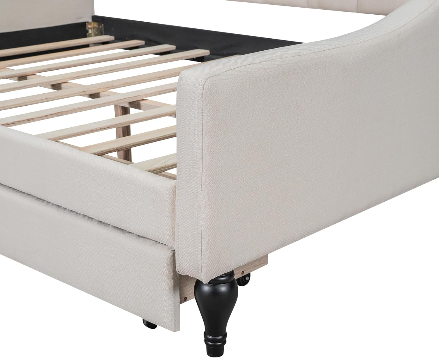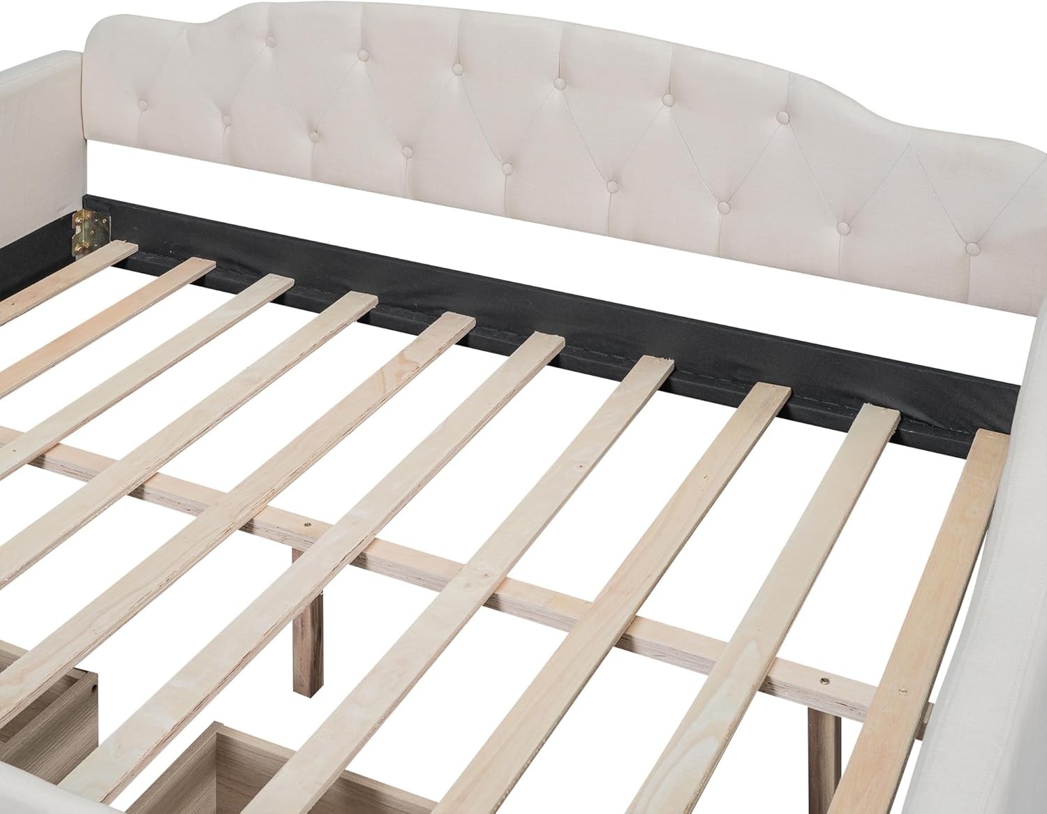 Full Size Upholstered Tufted Daybed with Two Storage Drawers,Linen Sofa Bed,Easy Assemble & No Box Spring Needed,Perfect for Small Space,Bedroom,Livingroom,Guest Room, Beige