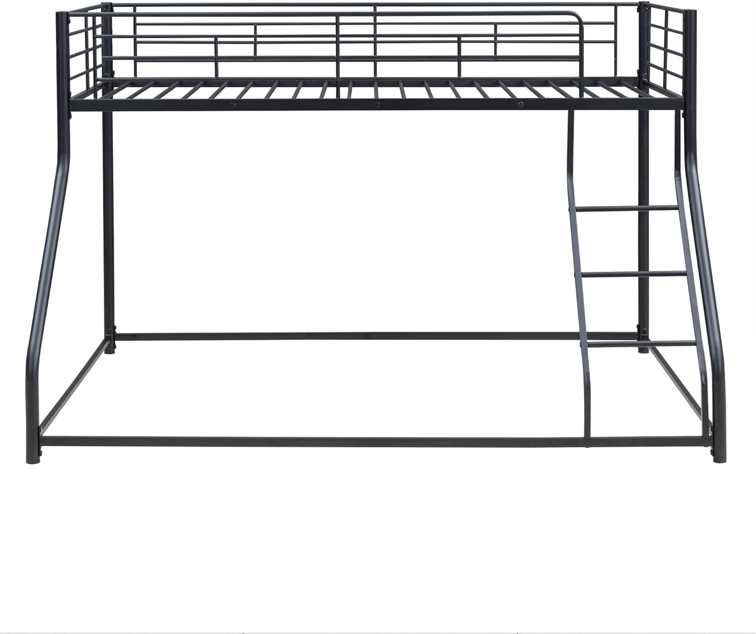Twin XL Over Queen Metal Floor Bunk Bed with Sloping Stairs and Safety Guardrails for Bedroom,Guest Rooms, No Box Spring Needed, Simple to Assemble,Black